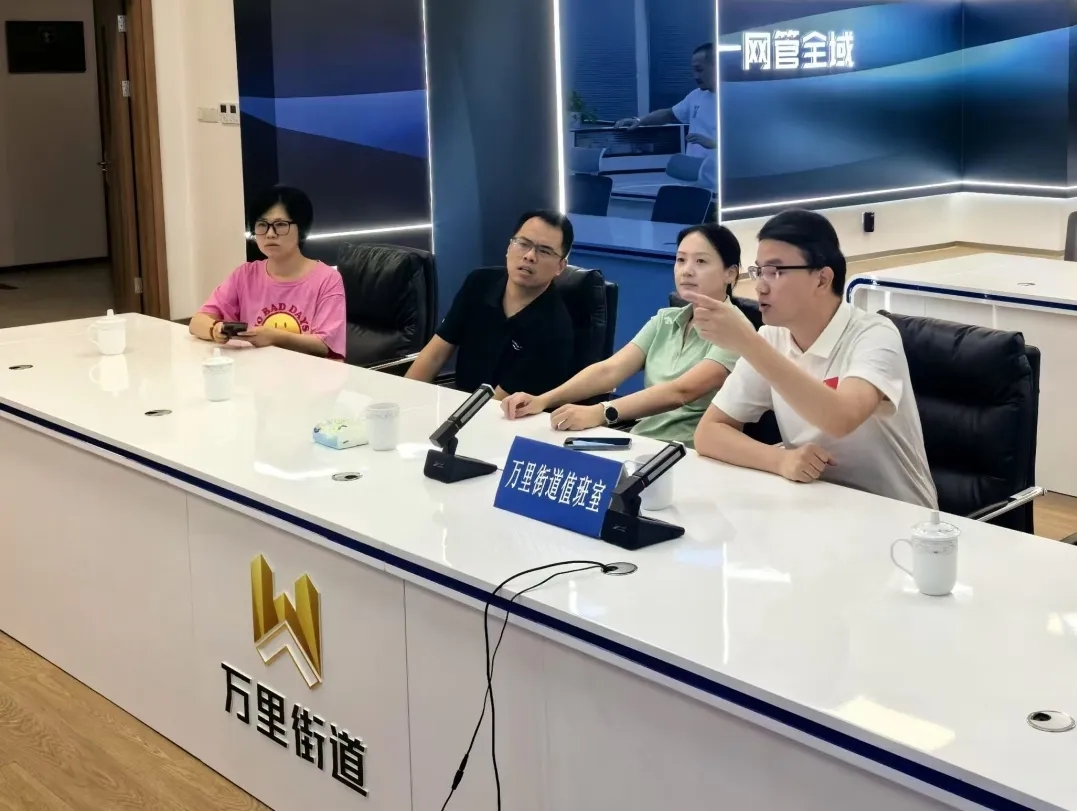 昨日上午,万里街道党工委书记罗艳,党工委副书记、办事处主任林开勇,党工委副书记尹天雨,办事处副主任张宇平,党政办、防汛办在台风来临之际赴辖区内居民区、城运中心通过现场查看、巡屏检查加梯工地安全、小区及沿街树木倒扶处置情况、市政设施抢修情况、沿街商铺场所关闭情况等,要求畅通信息沟通报送机制,及时汇集各方力量全力以赴开展各类应急处置工作。