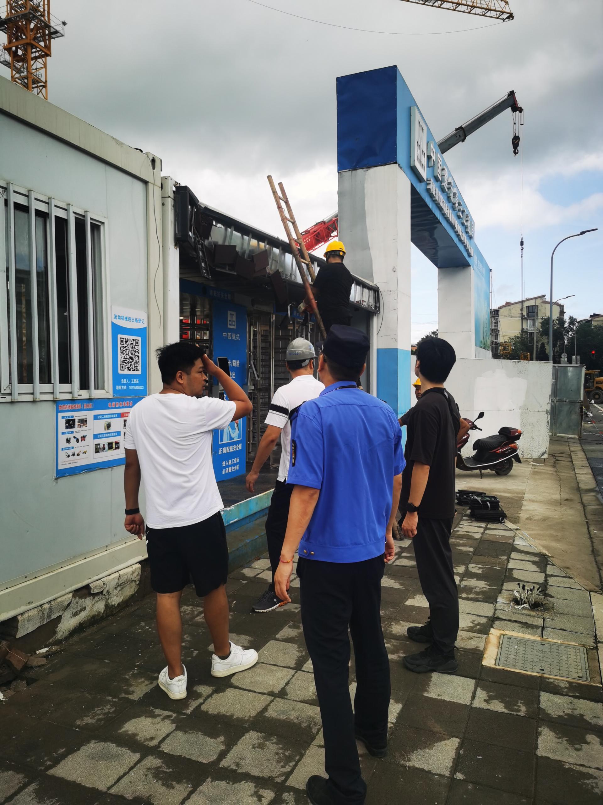 对于有安全隐患的工地宿舍区,执法队主动为工地提供帮助,协调应急住所,有部分工作人员居住在中队办公室,确保门窗牢固,并为其提供食品和生活必需品,中队确保24小时有工作人员值班,以便为工地人员提供最快捷的帮助。