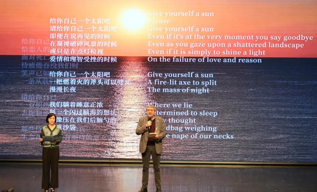 诗歌是和平的语言,也是人与人之间和解、拥抱、团结的桥梁。本届诗歌节“金玉兰”大奖获得者,法国著名诗人、小说家、剧作家、评论家让-皮埃尔·西梅翁与上海电视台著名主持人张颖,同台朗诵其诗歌作品“一个太阳的礼物 ”,赢得台下掌声连连。