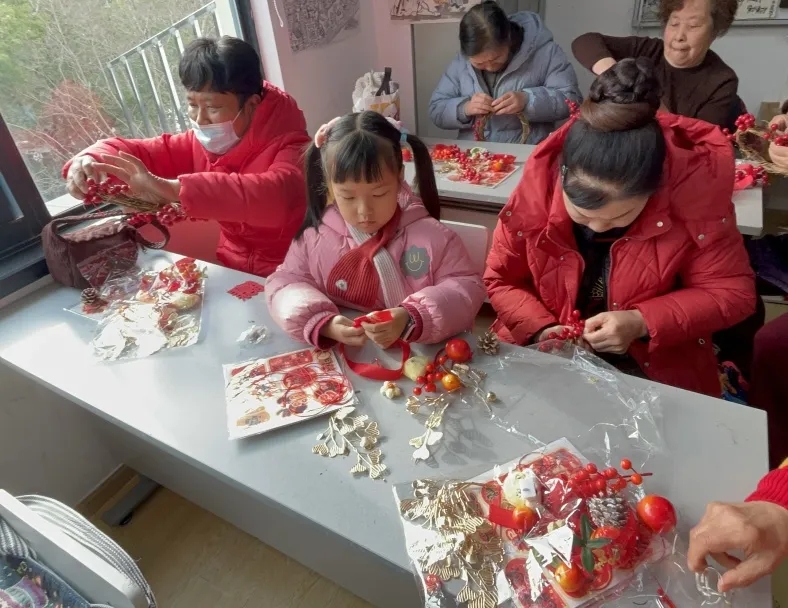 大家发挥自己的想象力,将五彩斑斓的材料巧妙地编织在一起,一个个充满创意的花环门挂逐渐成形。这些作品不仅装饰了梦想中心,更传递出了浓浓的年味,增进了社区居民之间的交流与互动。