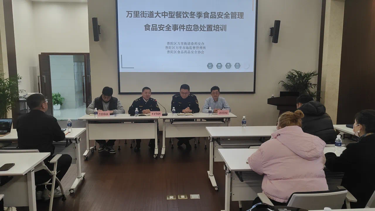 联合街道食药安办、区食品药品安全协会召开万里街道大中型餐饮冬季食品安全管理暨食品安全事件应急处置培训会议,旨在防范风险,保障市民节日期间食品消费安全。