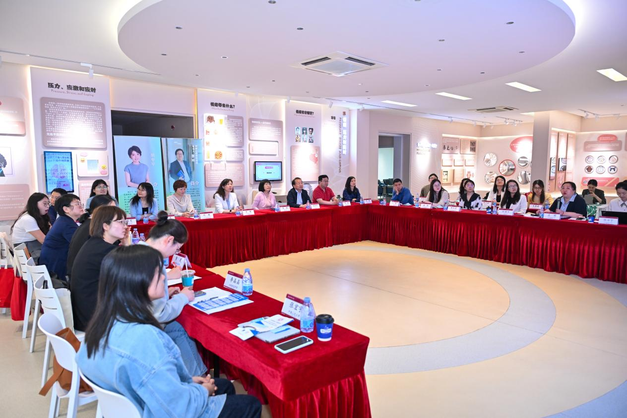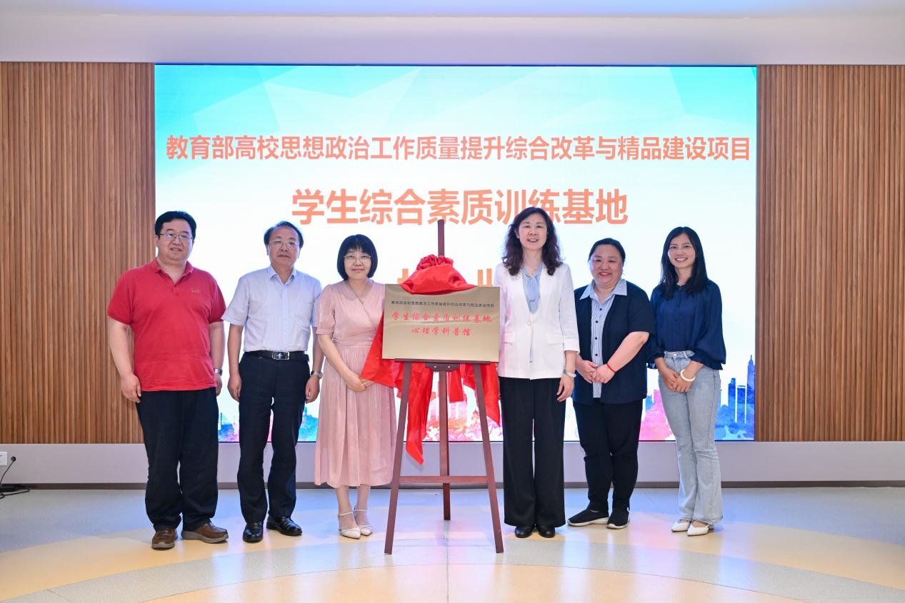 万里无忧体验空间作为全国学生心理健康工作咨询委员会(华东片区)实践基地,自2019年筹建以来,已打造成为集科普展示、互动体验、学术交流于一体的心理健康教育、实践高地,2024年的接待量突破5万人次,并获得教育部高校思想政治工作质量提升综合改革与精品建设项目、全国科普日优秀活动奖、上海市民家门口的好去处等荣誉。为进一步推动心理学与思政教育的深度融合,助力学生心理健康素养提升、市民朋友提高心理健康意识,促进和谐社会的发展,与会嘉宾现场举行了“学生综合素质训练基地”揭牌仪式,持续深化万里无忧体验空间的阵地作用,用可感、可知、可互动的方式呈现给多元群体,让矛盾和问题在安心、轻松的环境中有效化解。