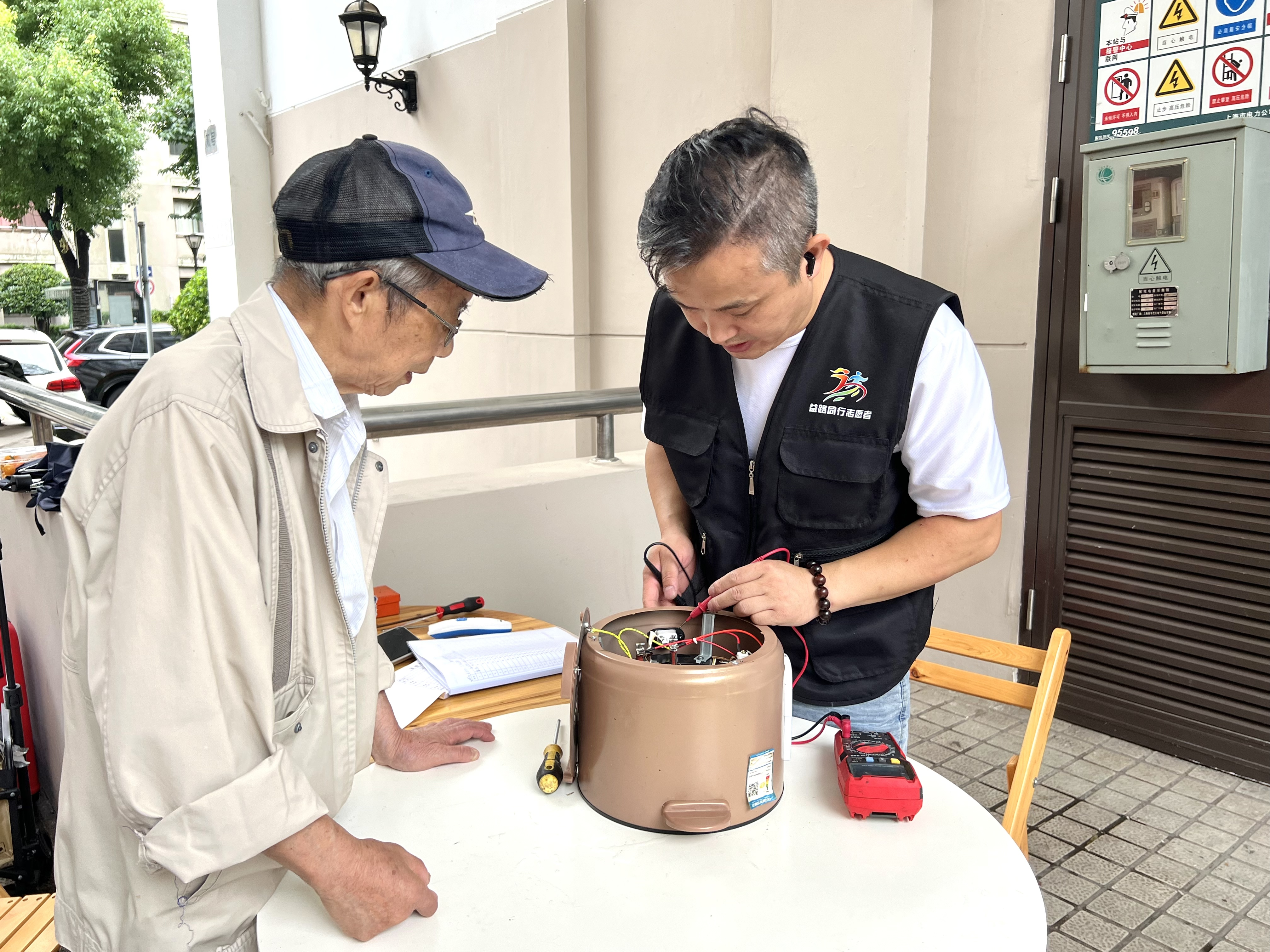 “嚓嚓嚓——”清脆的磨刀声格外悦耳。在“小修小补”摊位前,居民们排起了队,手中拿着样式各异的菜刀等待打磨。一旁,“第二梯队”能人达人们正忙碌地检修着居民送来的各类小家电。“您这个电饭煲是温控器出了问题,换个零件就好。”志愿者王功协一边检测,一边向居民解释。在他身旁,另一名志愿者正专注地修理着剃须刀、电风扇甚至损坏的行李箱拉杆。对于微波炉等无法现场维修的电器,他们则详细登记居民信息和故障情况,安排后续上门服务。“第二梯队”能人达人们用自己的专业技能服务邻里,通过看似不起眼的“小修小补”,实实在在地为社区传递了温情。
