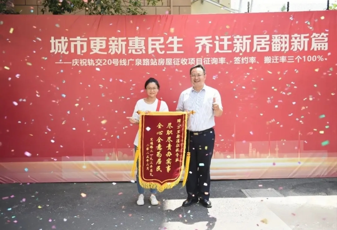 2025年06月19日 来源: 万里街道阳光洒在交通路3193弄的旧墙,打破梅雨淅沥,为居民们的集体搬家、迎接新生活“放晴”护航。6月15日上午,随着最后一户居民搬离,上海市轨道交通20号线广泉路站房屋征收基地完成了搬迁率交房100%,实现了房屋征收3个100%的目标。
