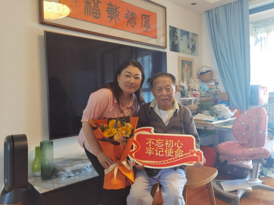 居民区党总支书记带着节日的祝福上门慰问社区离休干部,让出行不便的离休干部也能感受到党的温暖,使整个活动的温馨与关怀传递得更远。