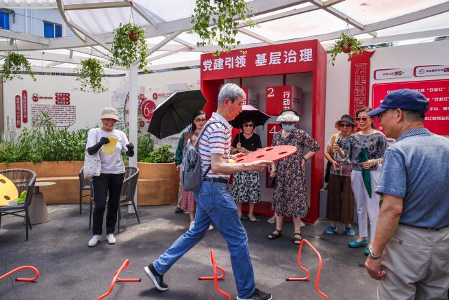 党员们在《红军不怕远征难》歌声中热身,完成三大打卡点任务,“巧渡金沙江”环节中老年党员挑战障碍行走、学习党史;在大场浦河“飞夺泸定桥”围坐拼图赛,用“火炬”贴纸纪念;“过草地-铁索竞速”持杆疾行,用“粮票”兑换“红色能量补给”,最终“胜利会师”。