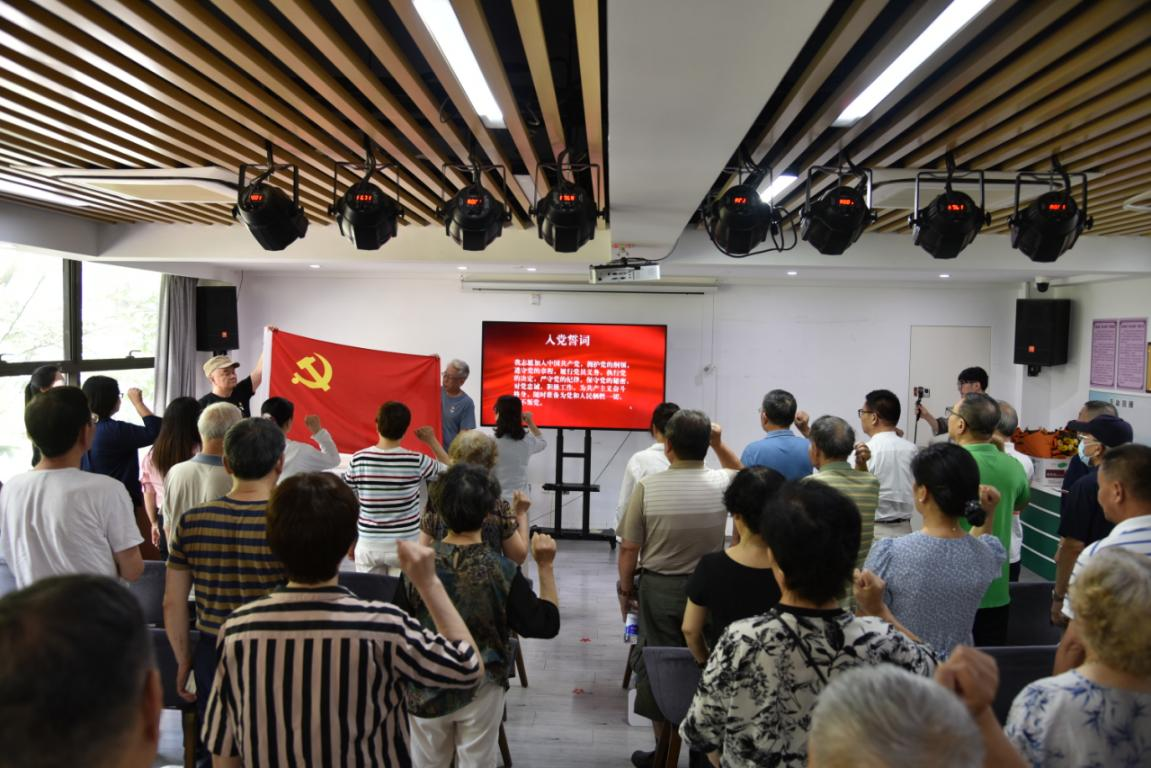 荣光仪式,回顾初心征程。全体与会党员重温入党誓词。中环花苑合唱团、童的梦幼儿园、恒阅读书班、社区志愿者以精彩的文艺表演庆祝建党104周年华诞。中环花苑居民区党总支与万里市场所、童的梦幼儿园、益丰大药房签署党建联建协议,旨在实现“资源共享、难题共解、服务共办”。