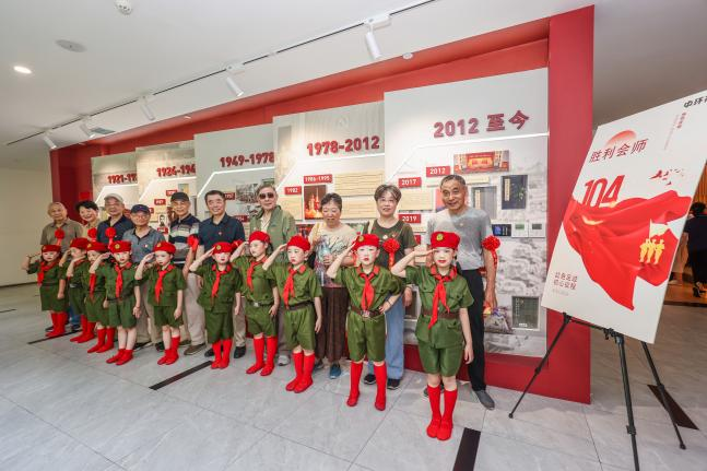 “对党说句心里话”活动区,老党员们手持喜爱的红色标语,面对镜头将深藏心底的爱党情怀娓娓道来。“党史连连看”互动装置将党的一大至二十大的光辉历程生动展开,老同志们专注地将大会的举办时间对应粘贴在会议标识上方,红色记忆在互动中愈发清晰。南湖红船承载着共产党人的初心使命,活动围绕这一红色元素设计了多项内容:组织老同志们围坐共制红船模型,在手作中感受百年理想。老同志们用诗歌颂“红船”,字字句句皆是对初心的坚守。中浩云社区5位50年党龄的老党员们作为党员代表,郑重地将“峥嵘岁月 光辉百年”的红星安放在“南湖红船”装置上,熠熠红星映着他们坚毅的目光,深深激励着在场每一位党员牢记历史、砥砺前行。