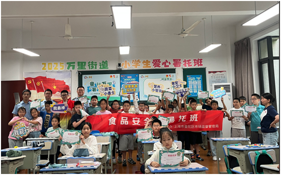 2025年07月24日 来源: 万里街道为进一步加强青少年暑期食品安全宣传,近日,万里市场监督管理所走进万里城实验学校,为小学生爱心暑托班的孩子们带来了一场主题为“食品安全、健康同行”的科普活动。35名小学生带着纯真的求知热情开启了一场别开生面的食品安全启蒙之旅。