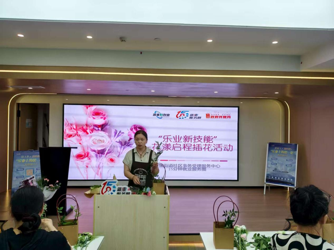 万里街道社区事务受理服务中心于8月13日下午,在15分钟就业服务站开展艺术插花职业技能培训活动,进一步提升求职者职业技能和素养,活动吸引了20余位高校毕业生、长期失业青年和企业人事参与。