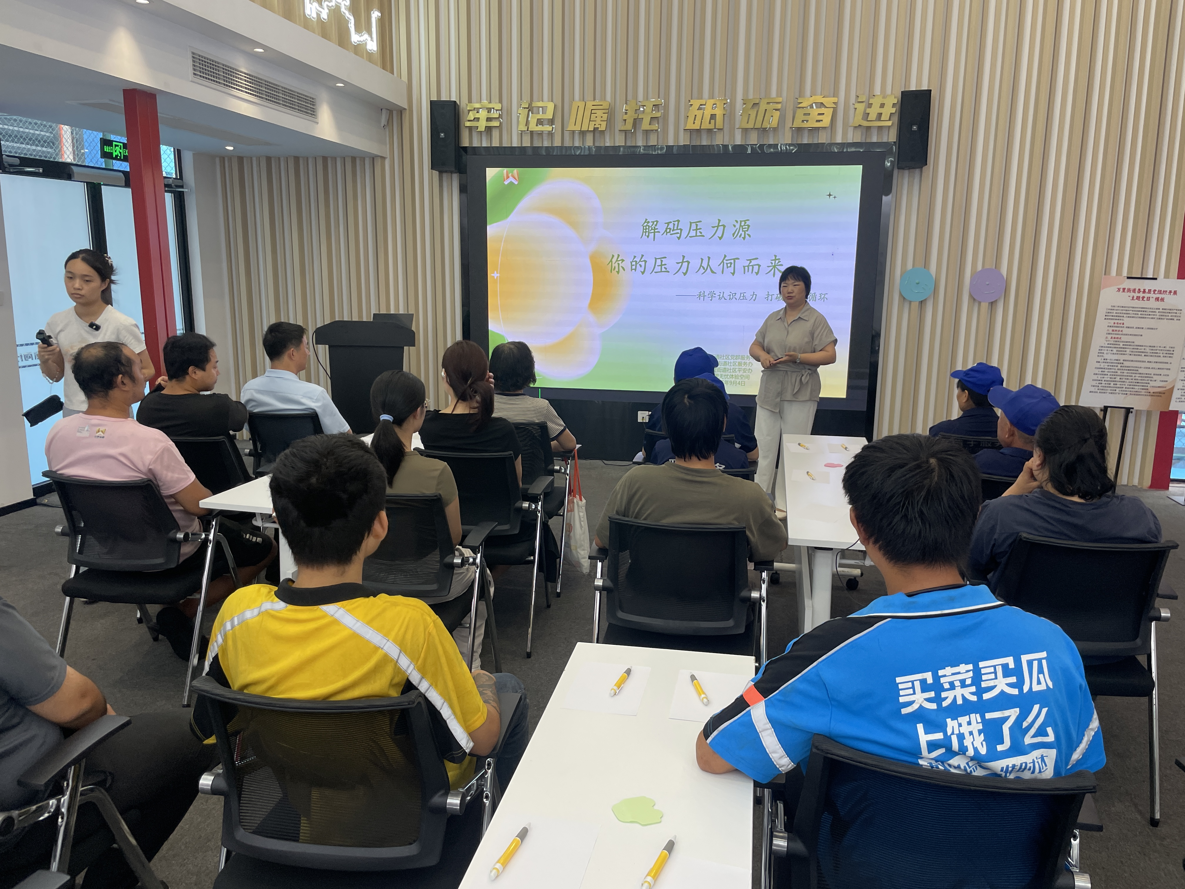 为关爱新就业群体身心健康,缓解日常工作压力,9月4日,在万有引力新业态新就业群体党群服务中心,万里街道为网约车司机、快递外卖小哥等新就业群体带来了一场暖心又实用的技能培训:解码压力源——你的压力从何而来?科学认识压力,打破焦虑循环。