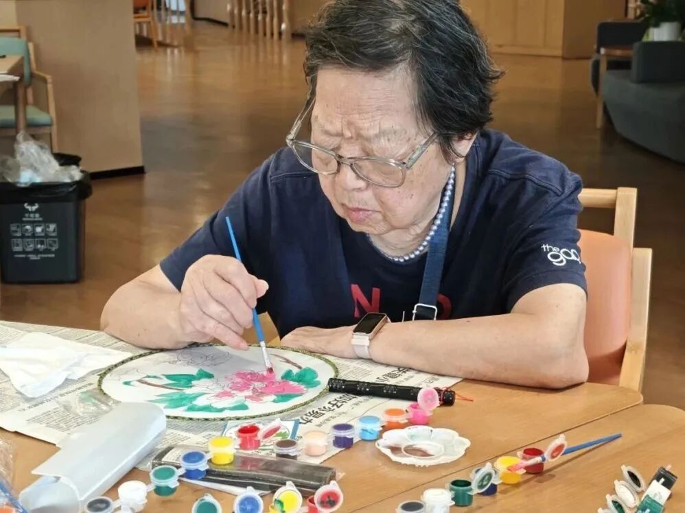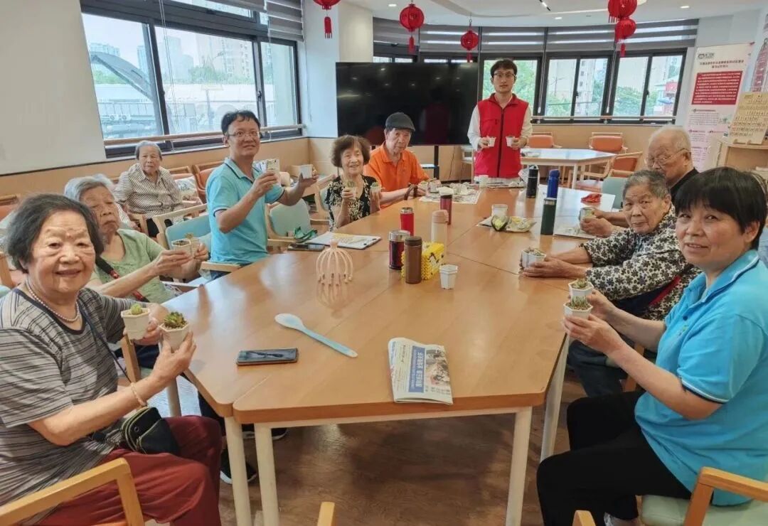 把夏天“做”成喜欢的样子,“这团扇画上荷花,扇起来肯定更凉快~”手工区里热闹非凡,长辈们拿起画笔,在素白的团扇上勾勒出夏日风景,荷叶田田、趣味动物,一笔一画都是对生活的热爱。另一边的“多肉小课堂”也很受欢迎,大家亲手种下萌萌的多肉,看着眼前的一抹绿意,仿佛连空气都清新了几分。活动结束后,每个人还收到了贴心小礼品——艾草棒。“这个好,夏天驱蚊正合适,家里人都能用!”
