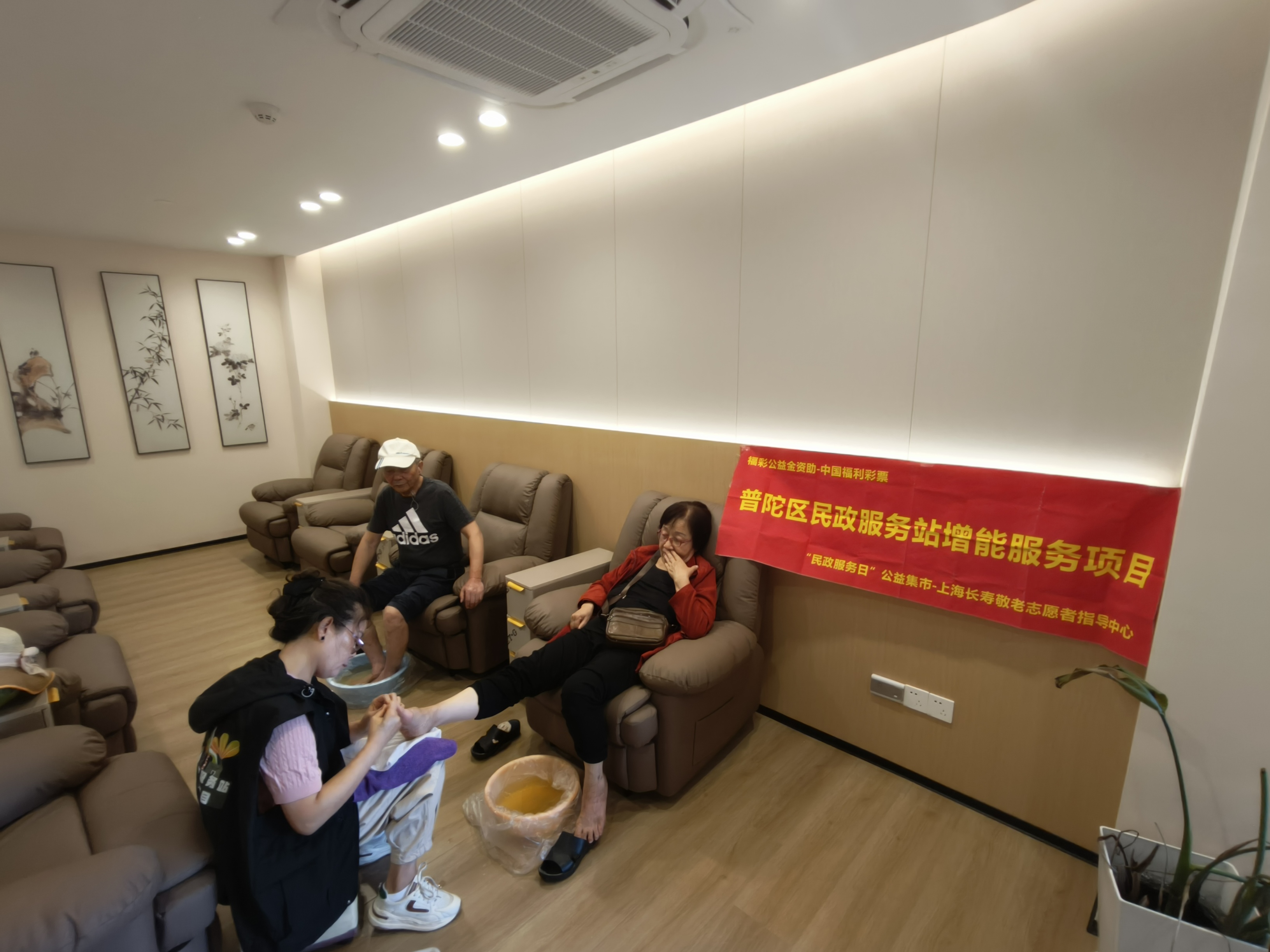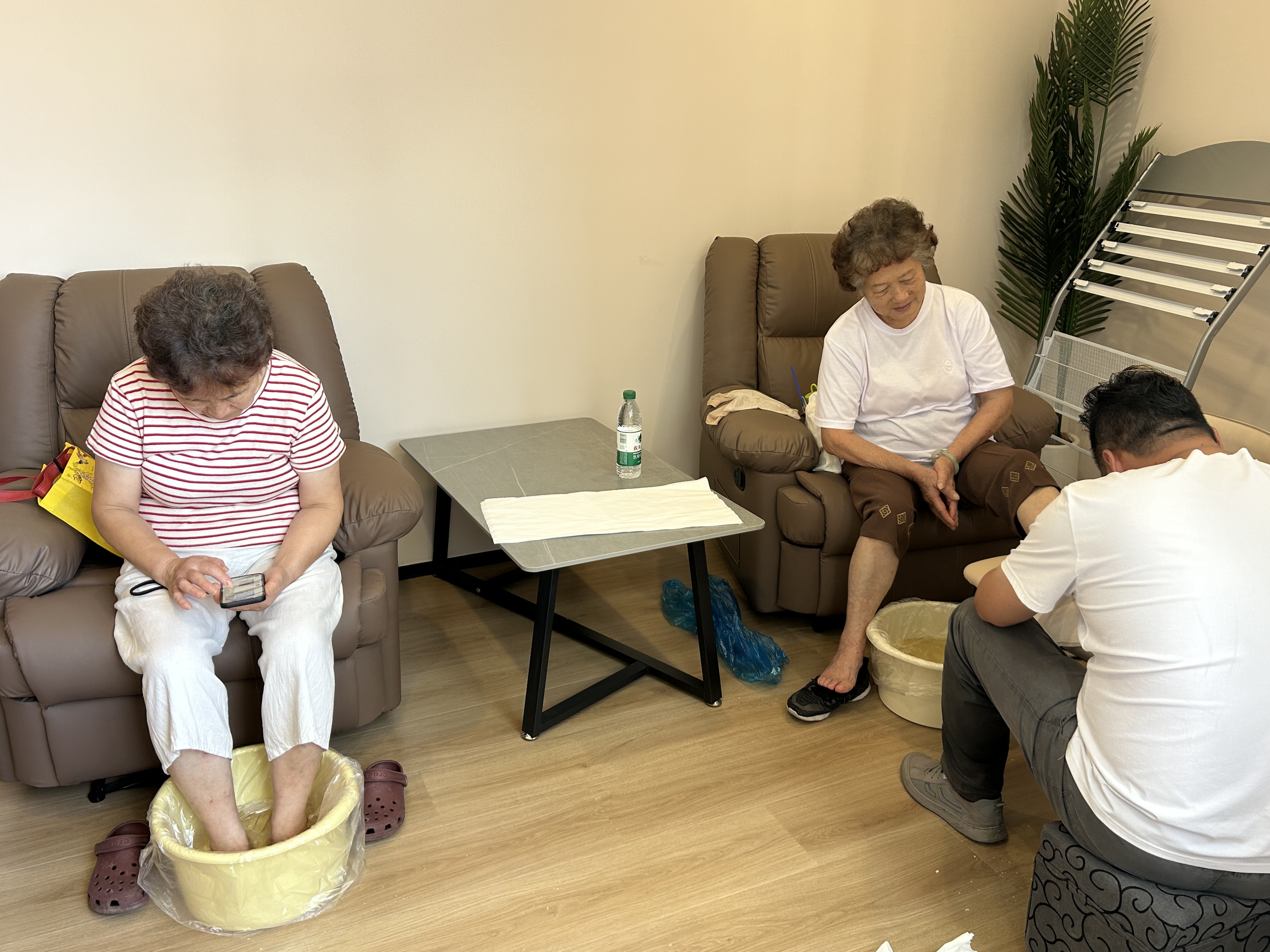 相邻的修脚区里,专业修脚师严格按照卫生标准消毒工具,逐个为老人检查足部状况。不少老人因常年行走,存在指甲嵌甲、老茧堆积等问题,自己处理时总担心受伤。修脚师一边小心翼翼地修剪指甲、去除老茧,一边叮嘱老人日常泡脚的水温、时长,“您这脚平时别穿太挤的鞋,每天泡十分钟脚,血液循环好,走路也轻松。”贴心的叮嘱让老人们倍感温暖,刚修完脚的张爷爷试着走了两步,连连感叹:“感觉舒服多了,之前走路总觉得硌得慌,现在一点不疼了!”