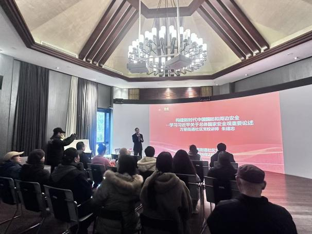 2月5日,在颐华党群服务中心,万里街道社区党校讲师朱建忠主讲《构建新时代中国国防和周边安全——学习习近平关于总体国家安全观重要论述》党课,结合当前复杂国际形势与安全挑战,系统阐释总体国家安全观的核心要义、实践要求,引导社区党员、流动党员强化国家安全意识,主动担当作为,共同筑牢安全防线。