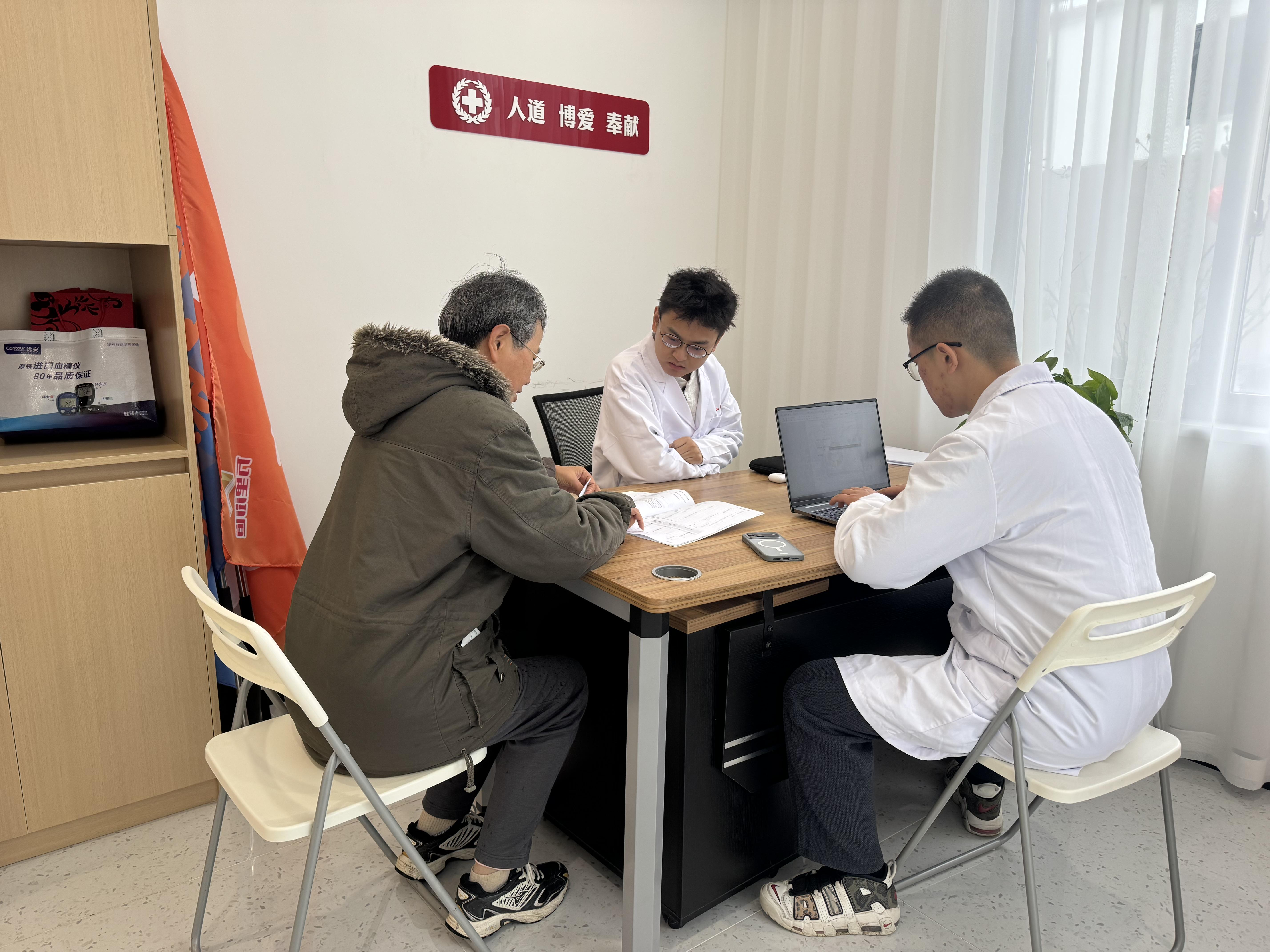 不同于医院门诊的忙碌节奏,没有冰冷的诊疗仪器,服务现场只有青年医学生温和的笑容、细致的解答,一张桌子、几把椅子,便搭建起一座连接专业服务与居民需求的“暖心桥梁”。居民们带着健康困惑驻足咨询,与青年医护面对面交流,氛围轻松而温暖。