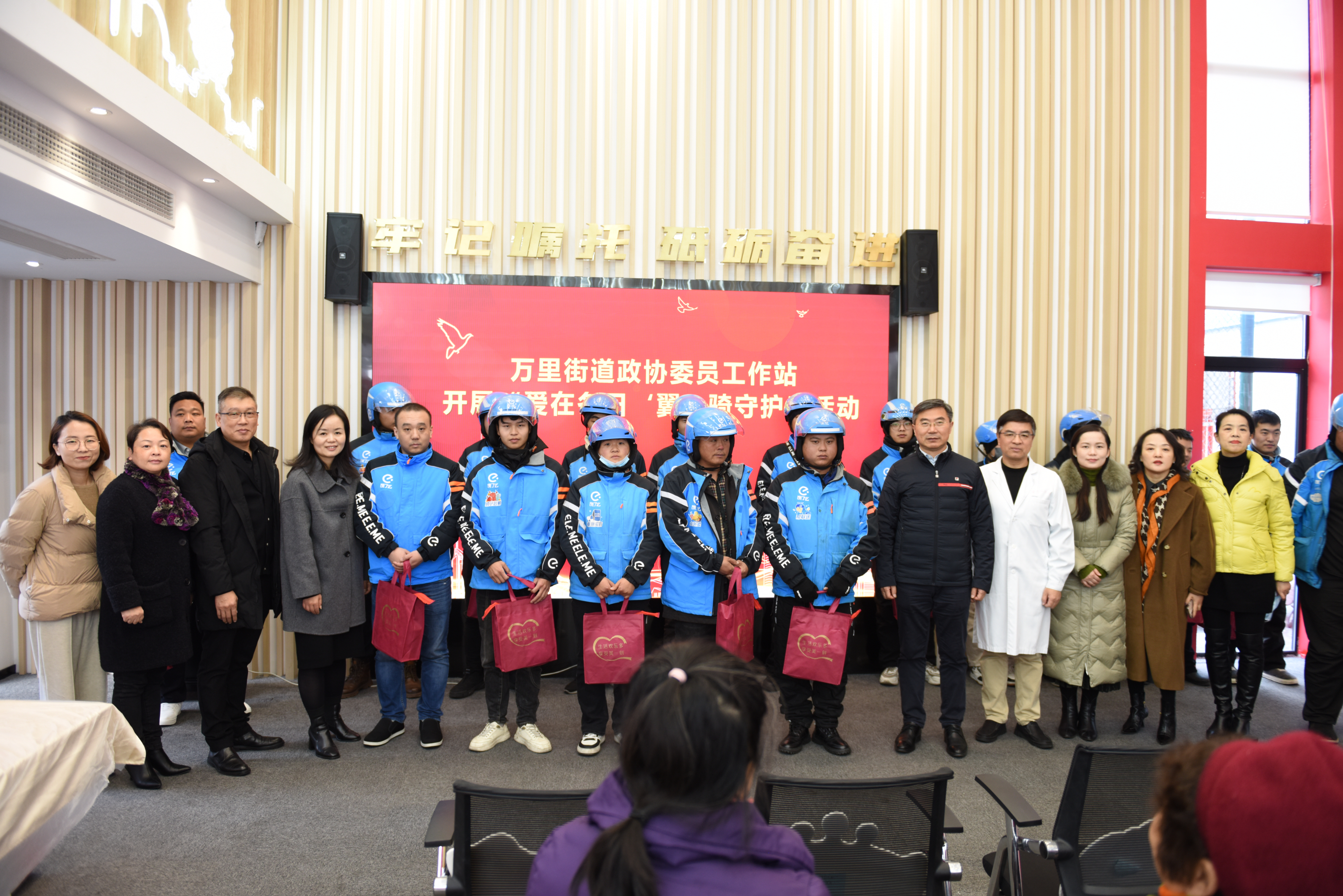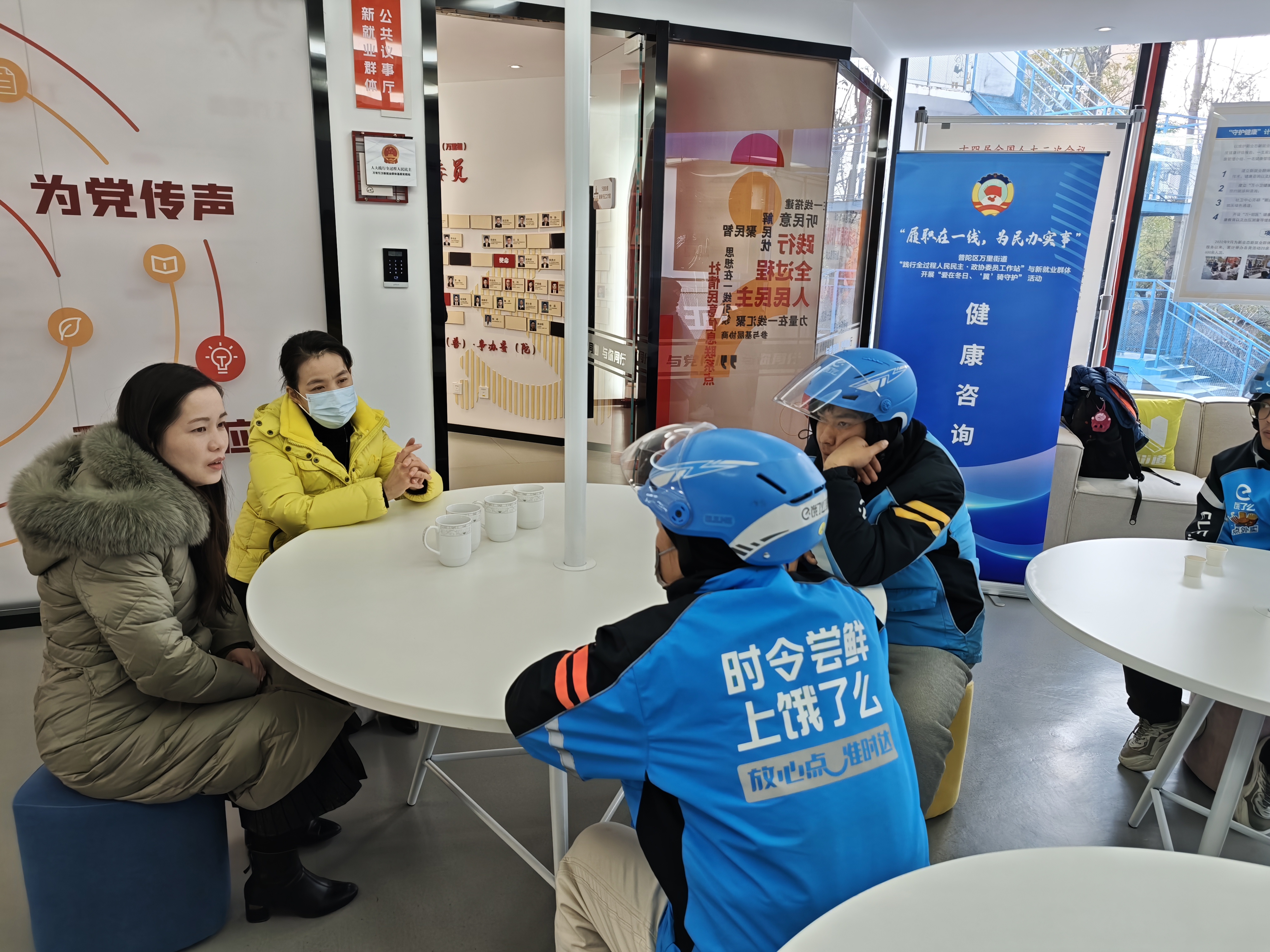 万有引力 履职为民 丨万里街道“践行全过程人民民主·政协委员工作站”与新就业群体开展“爱在冬日、‘翼’骑守护”活动