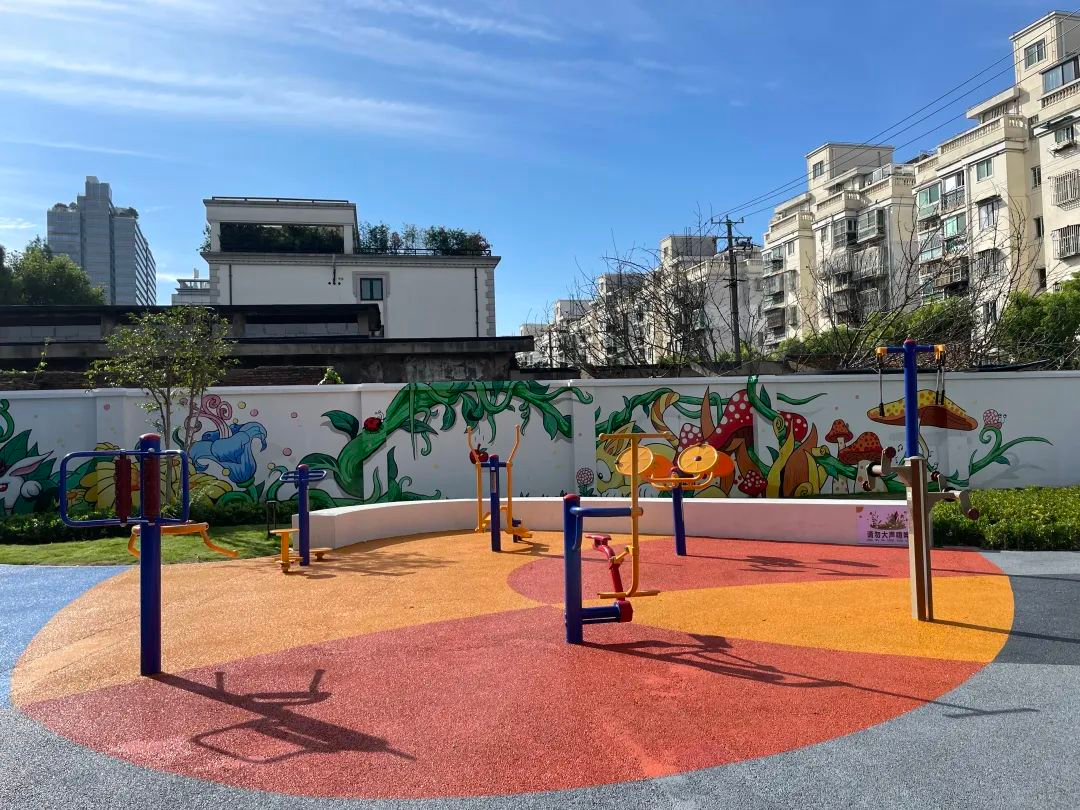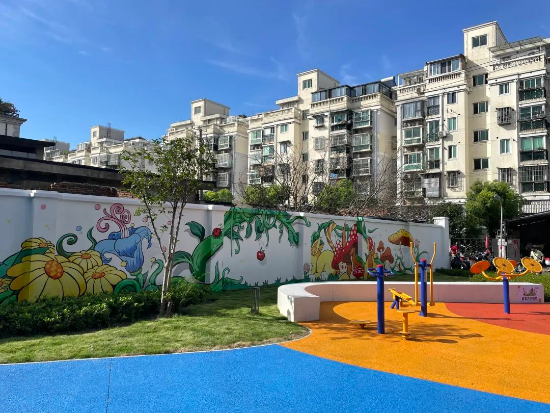 自今年6月建成以来,这片约1000平方米的口袋公园成为了集儿童游乐、休闲健身、便民停车于一体的多功能社区共享花园。