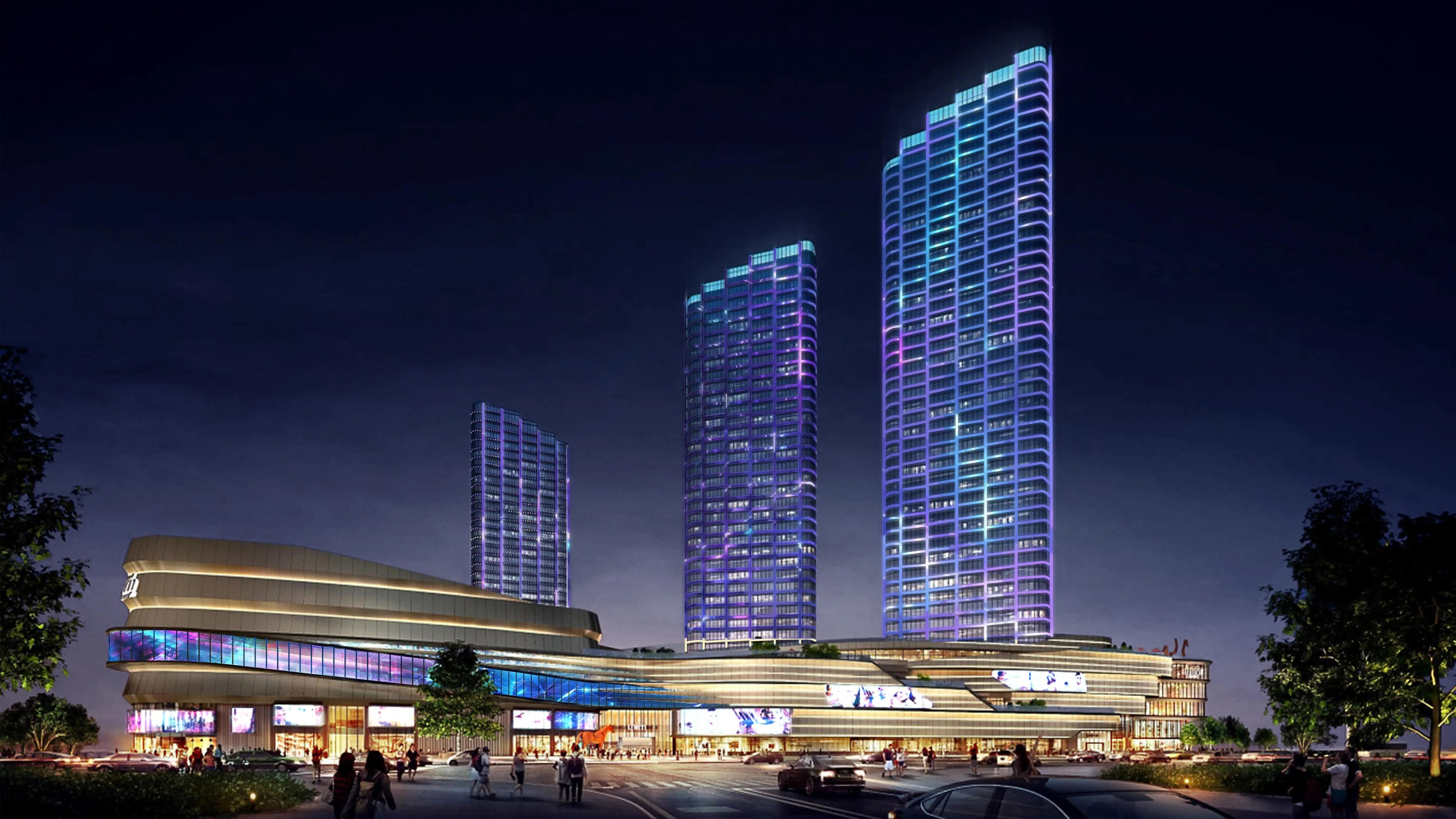 结合环宇城建筑结构以及现有灯光,通过技术编程实现灯光联动表演,突出商业氛围以及数字转型的未来科技感。