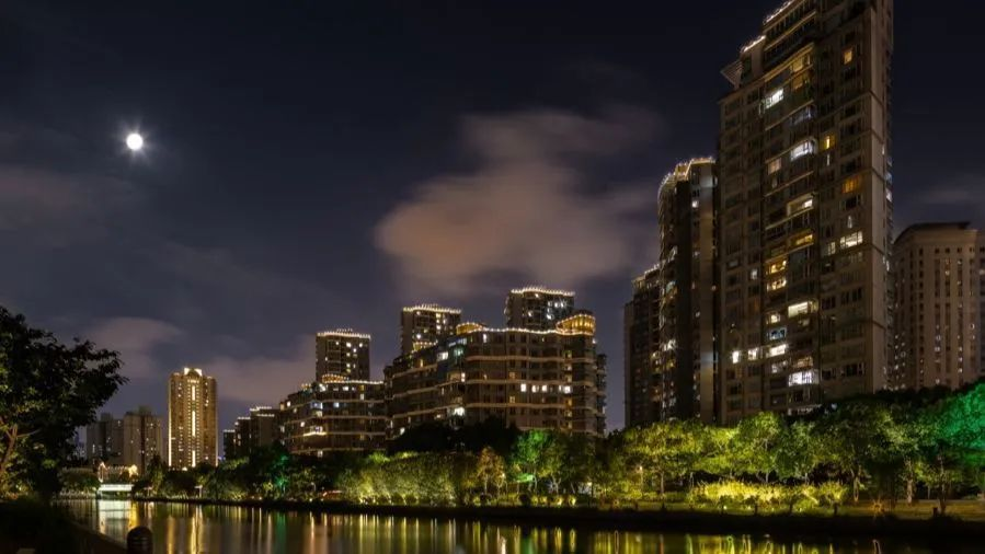中远两湾城和梦清湾区域楼宇和滨水空间景观照明
