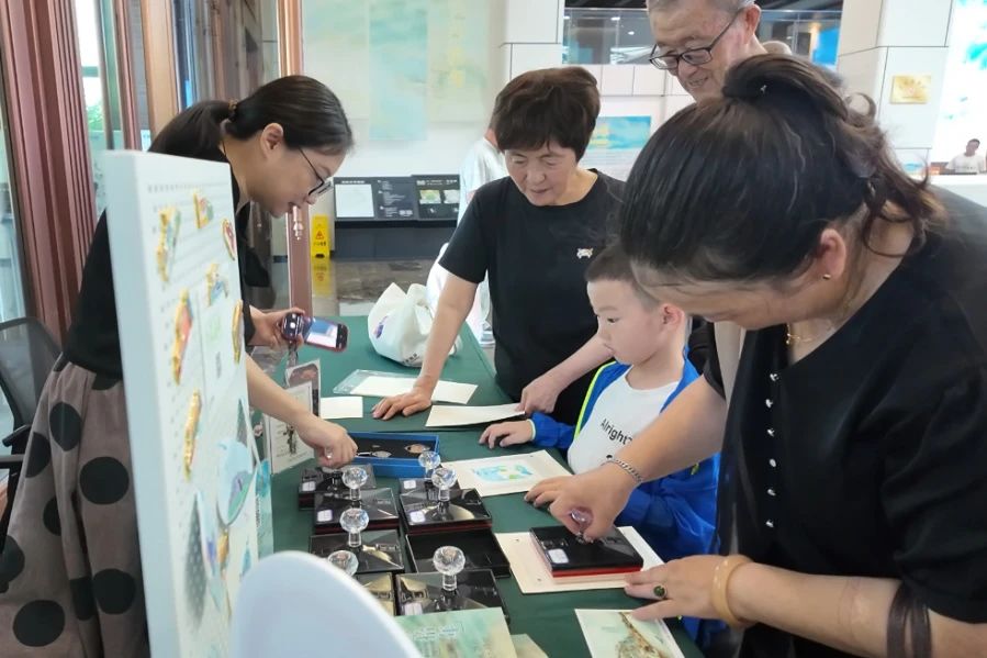 同时,依托本次巡展的契机,刘海粟美术馆分馆还将深受上海市民喜爱的“半马苏河”主题套章、作品明信片等普陀文旅的文创产品带到现场,同样受到姜堰市民的热情打卡。