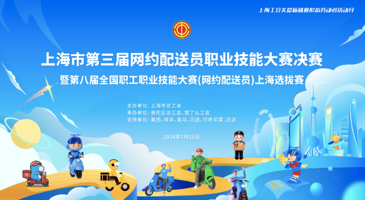 骑手大比拼!上海市第三届网约配送员职业技能大赛在普陀举行 2024年07月29日