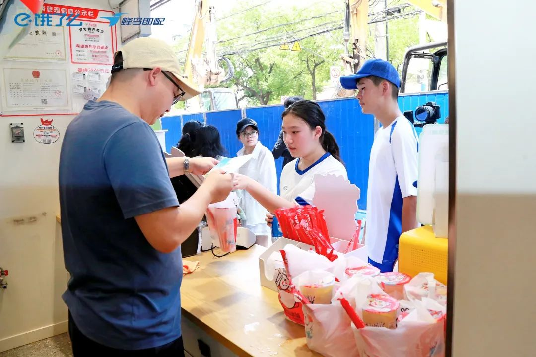 据了解,为了保障孩子们的交通安全和身体健康,本次职业体验活动全程采取步行方式,选取短途配送订单,人员配置为“3名孩子+1位带教骑手+1位家长+1位老师”,每组体验两单。