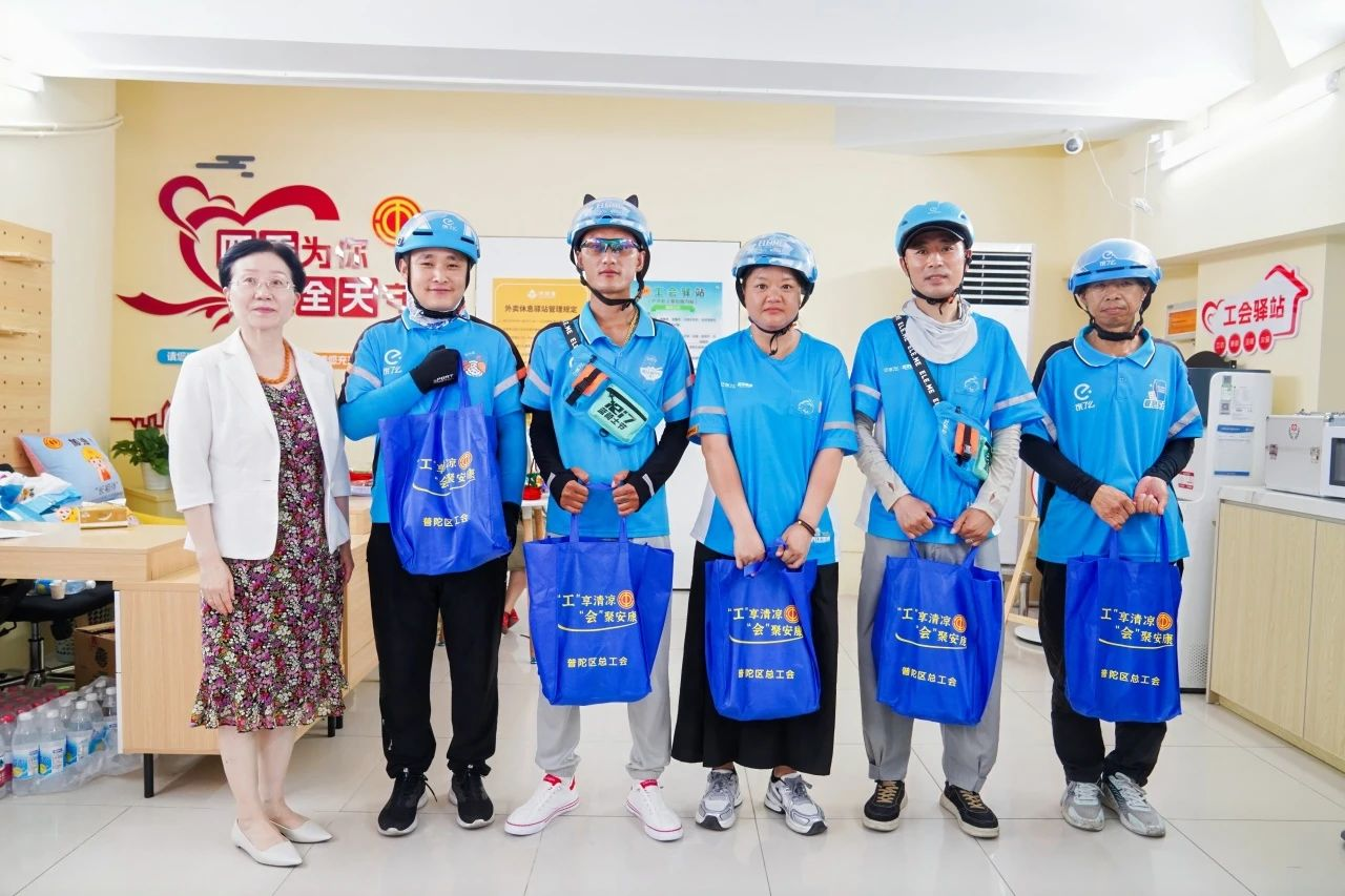 日前,“四季为你 全天守候”职工友好服务圈夏日主题活动长风新村街道月星环球港专场举行。普陀区人大常委会副主任、区总工会主席姚军等领导参加,为户外劳动者送上清凉慰问品。