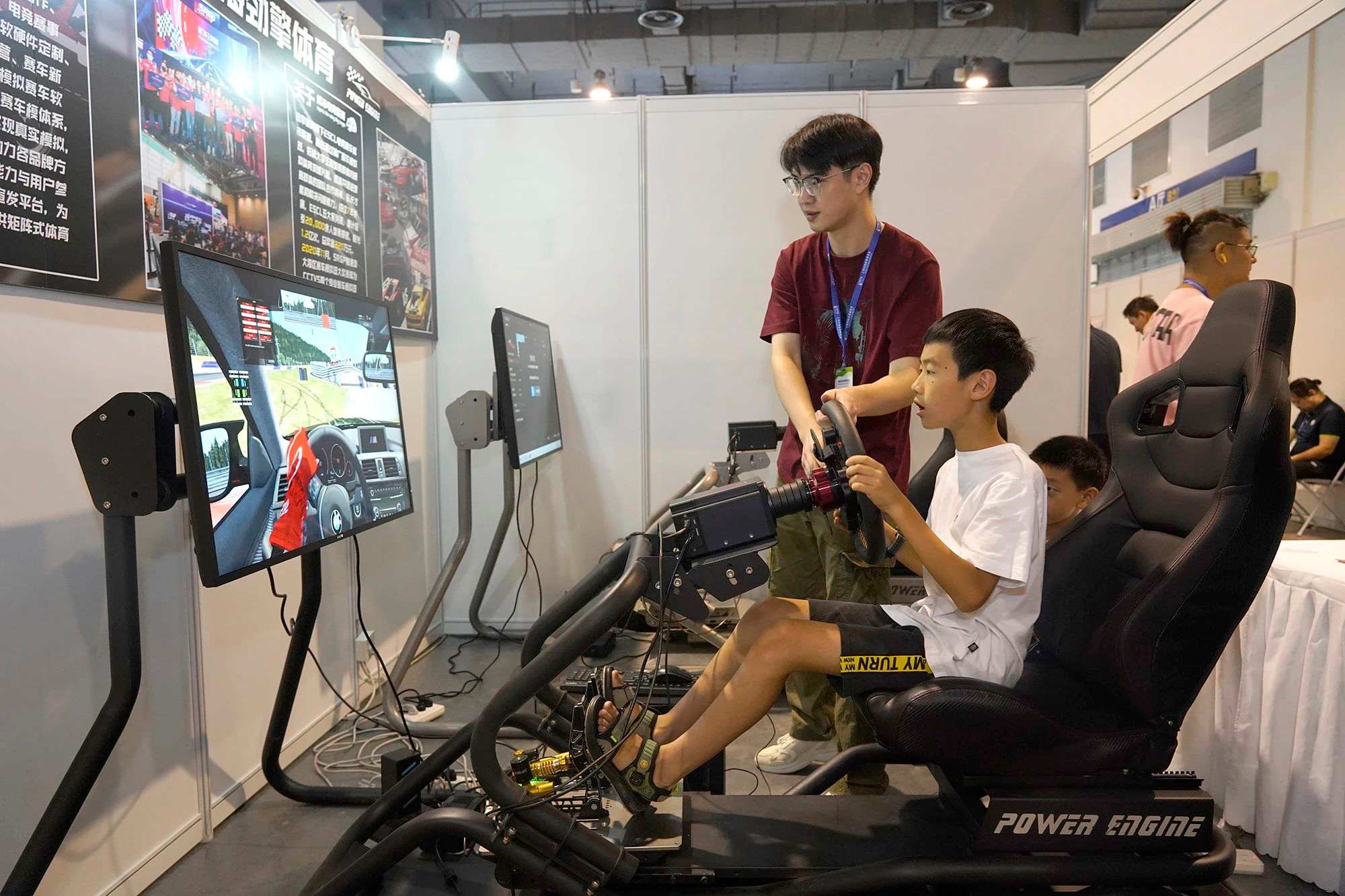 正值暑假,不少学生在父母的带领下也来到科技体育博览会的现场体验不一样的展览体验。在赛车模拟器展台,王同学正盯着屏幕开着模拟赛车感受着真实的赛场竞技,“今天是我第一次开这样的大型模拟赛车,转弯时方向盘也会同时抖动,非常真实。”而在一旁的模型军舰展位,不少市民也在争先恐后地拍照留念。“之前只能在电视上看到这些军舰,今天能够这样近距离地观察,我感到非常兴奋。”正在拍照的曹先生正用相机记录下这一难忘的时刻。