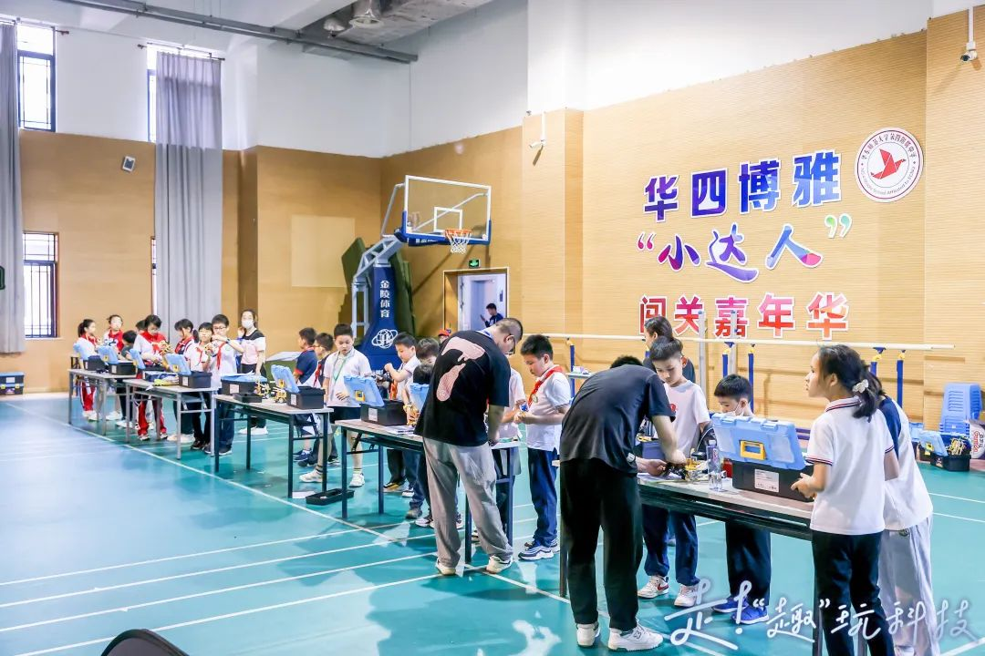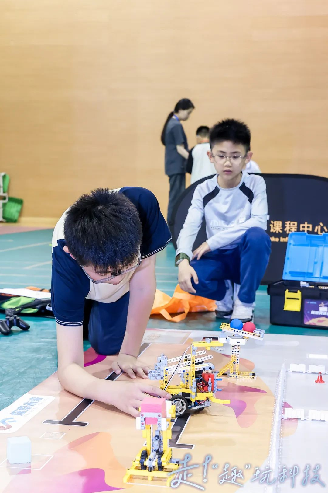 在上海地区赛(普陀分赛场)的角逐中,华东师范大学第四附属中学的体育馆及计算机教室成为了青少年科技人才的竞技场。500余名来自全市的学生在这里展开了一场场大比拼,他们尽情展现自我、挑战极限,诠释了普陀区青少年科技节的核心“‘趣’玩”。以兴趣为导向,以乐趣为动力,青少年们在实践体验中不断提升解决实际问题的能力。