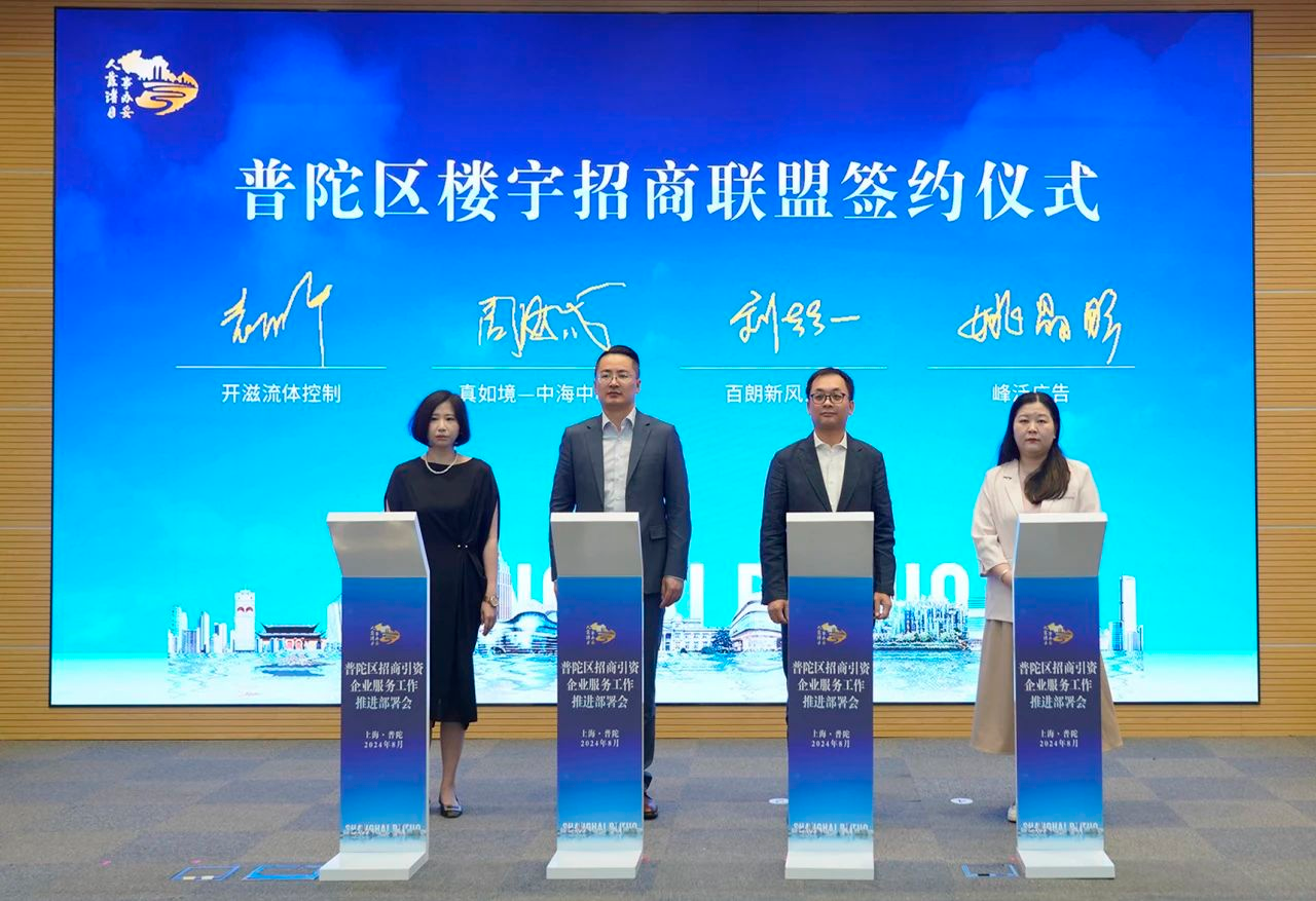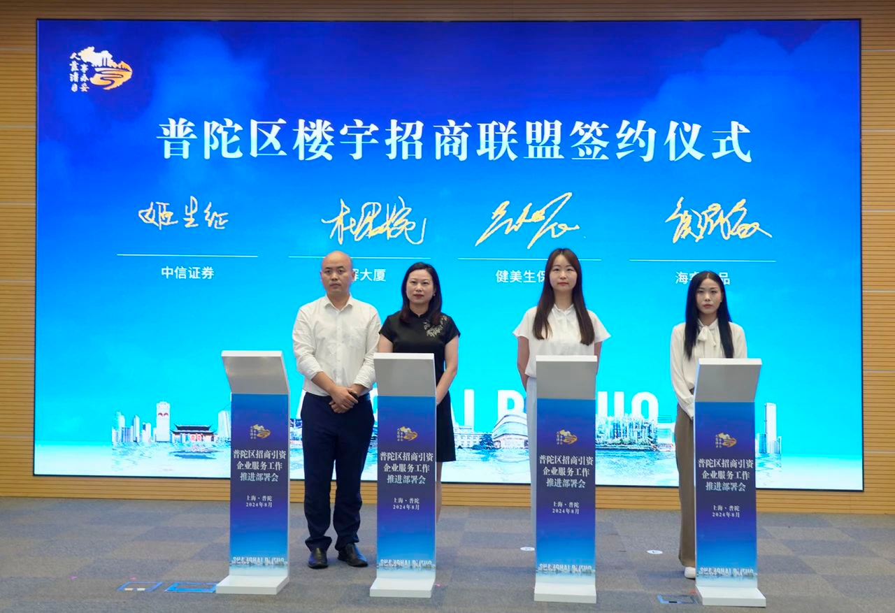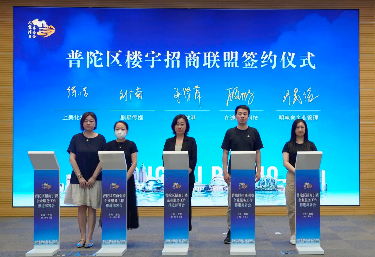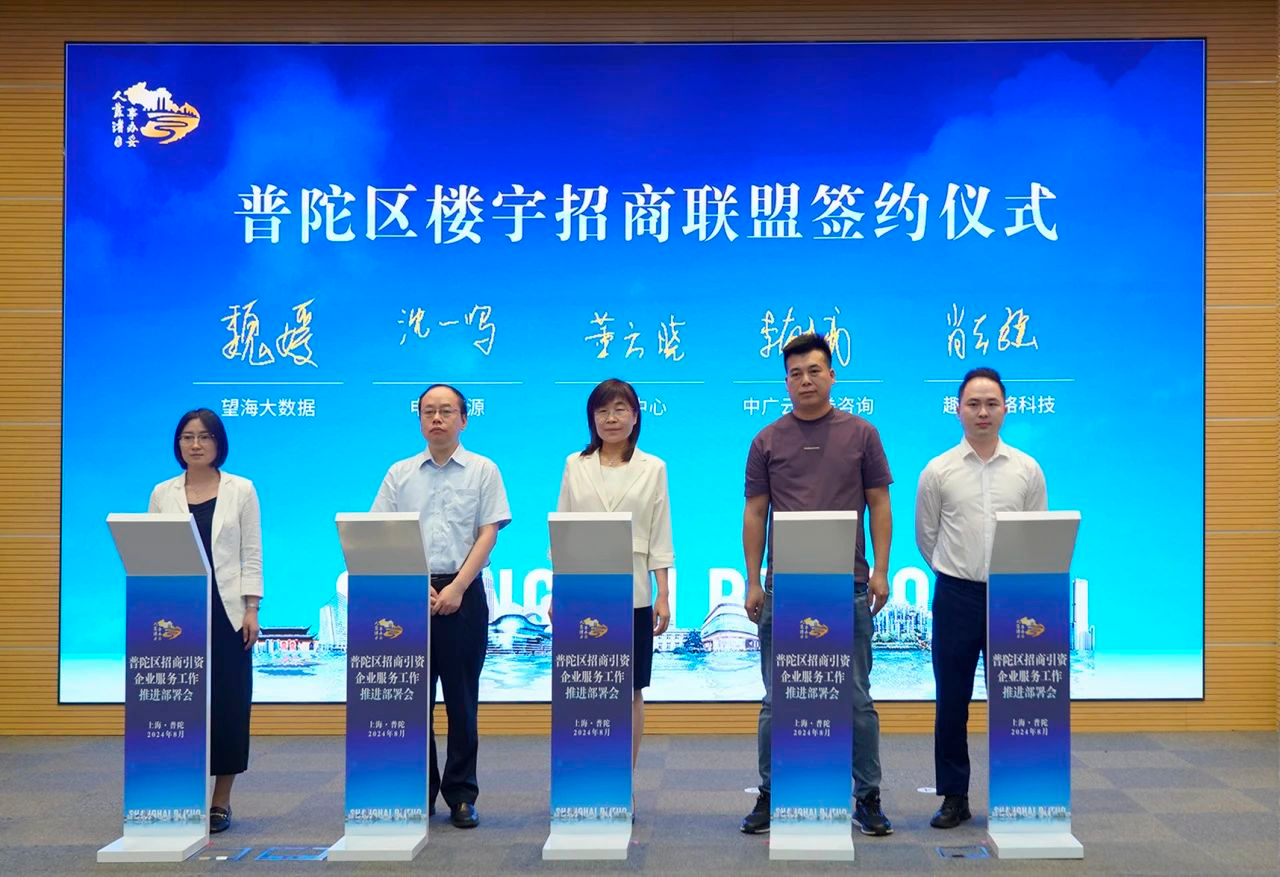 在普陀,上海环球港、信泰中心、中海中心、智创TOP等一组组楼宇群连点成线,勾勒出了上海西北部的城市“天际线”。上半年,中海中心、鸿寿坊、信泰中心被列入全市“最火”写字楼,中海中心出租成交面积位列全市前三。这些楼宇群招引了一批批实力雄厚的好产业、好项目、好企业入驻楼宇载体,推动楼宇经济“拔节生长”,促进区域能级提升跃进。会上举行了普陀区楼宇招商联盟签约仪式。