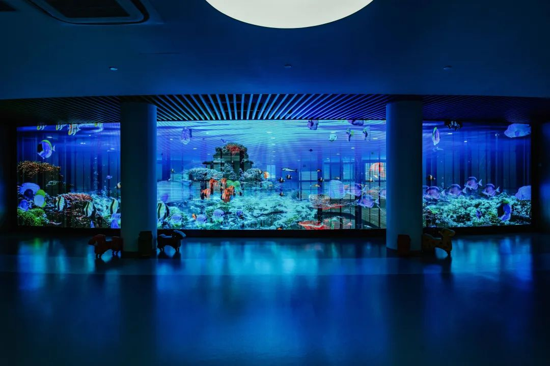 记者了解到,中托普陀园区以“科技创新”为主题,基于科学理念,开展对科技创新人才早期培育的探索实践。走廊上的LED“巨幕鱼缸”、一闪一闪的星空穹顶、沉浸式全息投影“森林”……园区里的每一处,都能轻易勾起幼儿们的好奇心和探索欲,培养婴幼儿好奇提问、善于思考、敢于创造的学习品质。