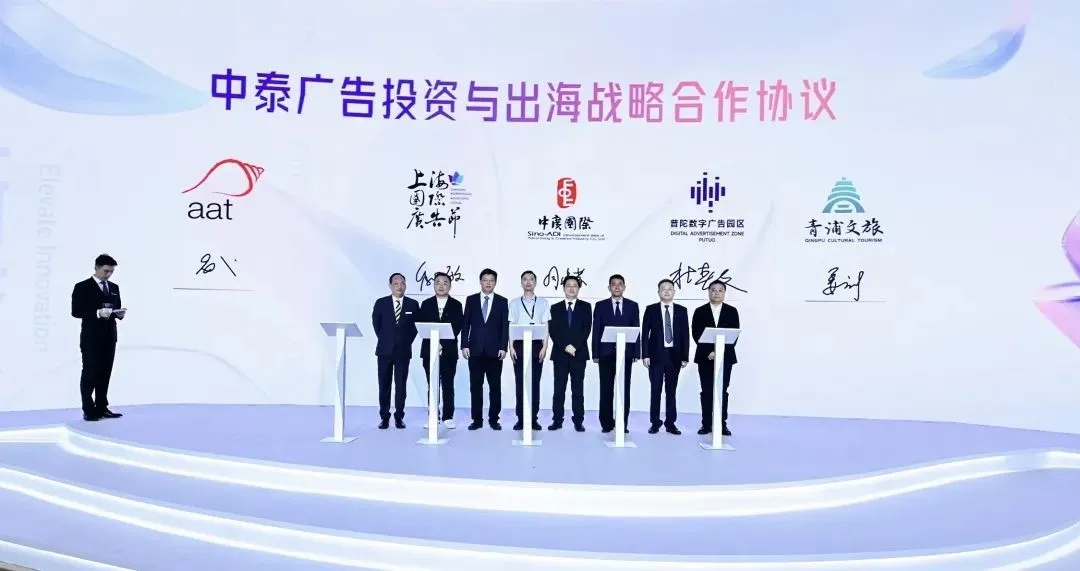 上海国际广告节一直以来都以“提升国际化服务能力”为目标,坚持将广告业“引进来”与“走出去”相结合,提高广告业的国际化水平。上海国际广告节组委会携中广国际广告创意产业园区、普陀数字广告园区、长三角一体化示范区(上海青浦)数字广告产业园区在现场分别与英国广告出口集团、泰国广告协会签订了《中英广告投资与出海战略合作协议》《中泰广告投资与出海战略合作协议》,为今后英、泰广告企业“入海”奠定基础。
