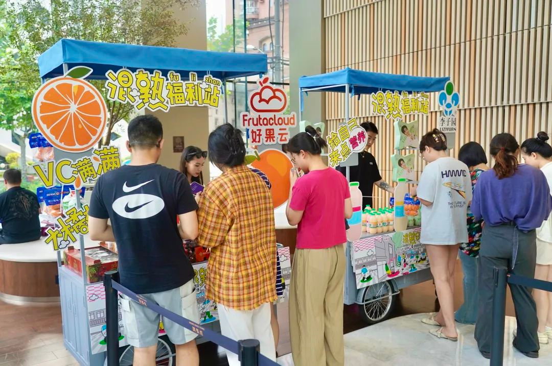 “混熟日”活动当天,鸿寿坊还提供了白领关怀服务,与楼宇入驻企业李子园、好果云合作打造“混熟福利站”,提供应季水果和能量饮品,为忙碌工作时光注入活力;此外,还与商业租户超级猩猩健身、LANN SPA、花下美甲美睫携手推出了白领专属“松弛三件套”福利券,为高质量的办公生活注入健康与精致。