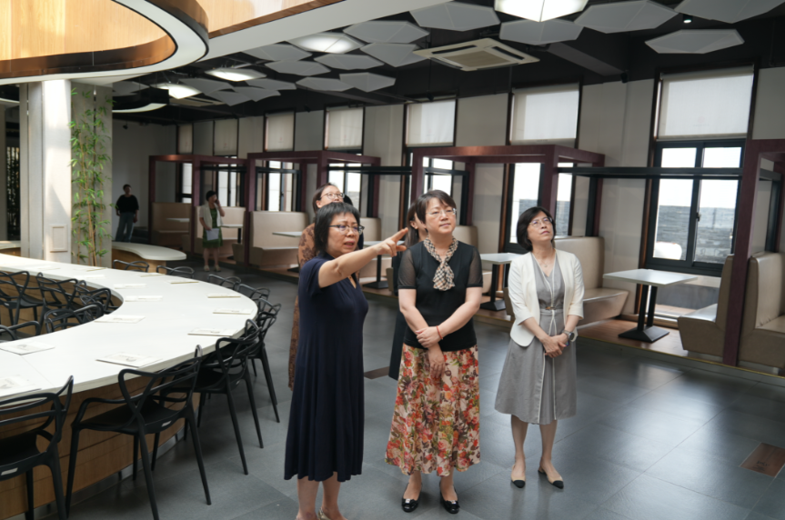 杭春芳首先来到上海市宜川中学,察看了校园环境,听取学校负责人介绍特色教学内容及学校发展设想,并参观了宜川书房、图书馆、“飞行·创想”创新实验室,对学校高品质办学给予肯定。“学校要为学生营造良好的学习氛围,为教师提供舒适的工作环境。”杭春芳叮嘱学校要发挥好教育主阵地作用。