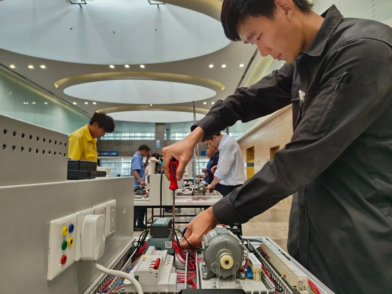 竞赛现场,选手们展现出高超的专业技能和昂扬向上的精神风貌,在理论知识和实际操作两个层面展开了激烈角逐。在电工项目中,选手们熟练地操作各种工具,精准地完成线路故障排查;水电维修工组选手则展示了他们精湛的维修技巧,迅速解决各类水电问题;在智能楼宇管理员项目中,选手们熟练地操作各种智能化设备,体现了他们对现代化、智能化物业管理的深刻理解。“通过这次技能竞赛,我们希望能够挖掘和培养更多的物业行业劳模和工匠。”参赛选手、西部企业集团房屋维修有限公司维修班班长杨华峰表示,“这不仅是对从业人员技能水平的一次检验,更是展示普陀物业人精神面貌的重要平台。”