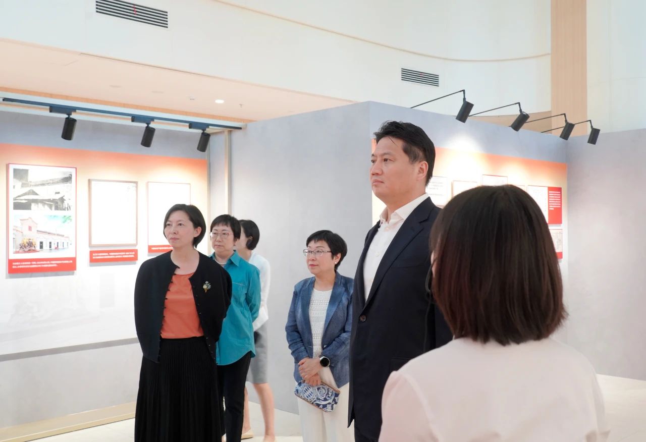 会前,与会领导一同参观了《“礼赞祖国、致敬先锋”纪念沪西工友俱乐部成立100周年主题展》。该展是普陀区近年来展陈空间最大、史料最丰富、展品数量最多的一次工运主题展,展览分为“炬火初照”“赤焰燎原”“烽火绵延”“奔向光明”四大板块,全面梳理了从1919年到1949年前后中国共产党领导的上海工人运动的重要事件,以及沪西地区的工运历史和工人先锋。
