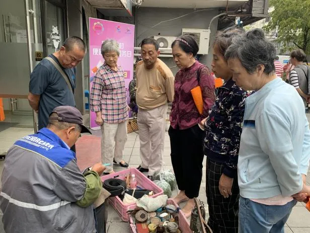 “您在我们这边买油,我们可以帮您送上门!”“叔叔!这边可以免费帮您检查下牙齿。”爱心理发、鞋子修补、手表修理、测量血糖血压、非遗手作等“标配摊位”一如既往被居民们的热情包围,让“15分钟社区生活圈”更生动、更充实。除此之外,中心更与东方有线、上海农商银行、口腔医院等共建单位一起将基础服务“进一步升级”,让老年朋友们在家门口就可以享受到优质、靠谱的服务,增强获得感、幸福感、安全感,安享幸福晚年。