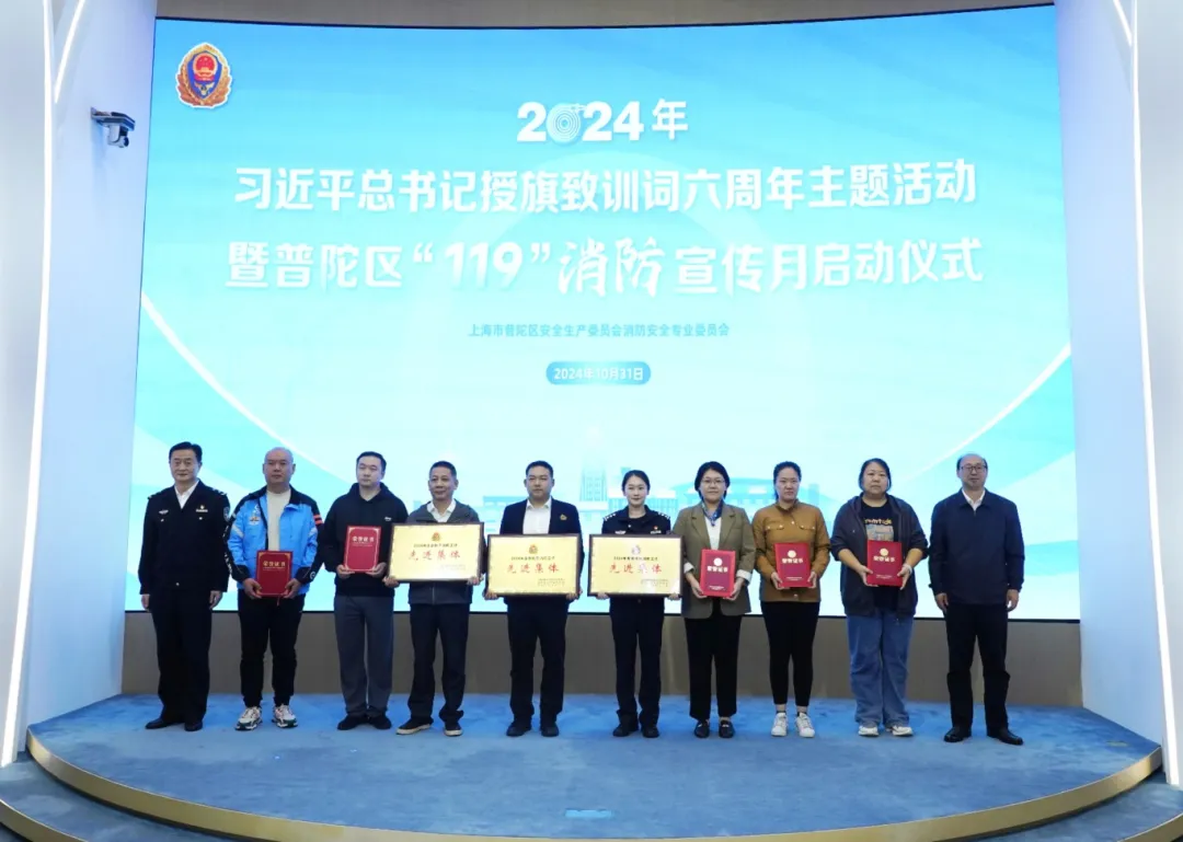 活动中,为获得2024年度消防工作先进集体、消防工作先进个人、优秀消防志愿者的代表进行了颁奖。