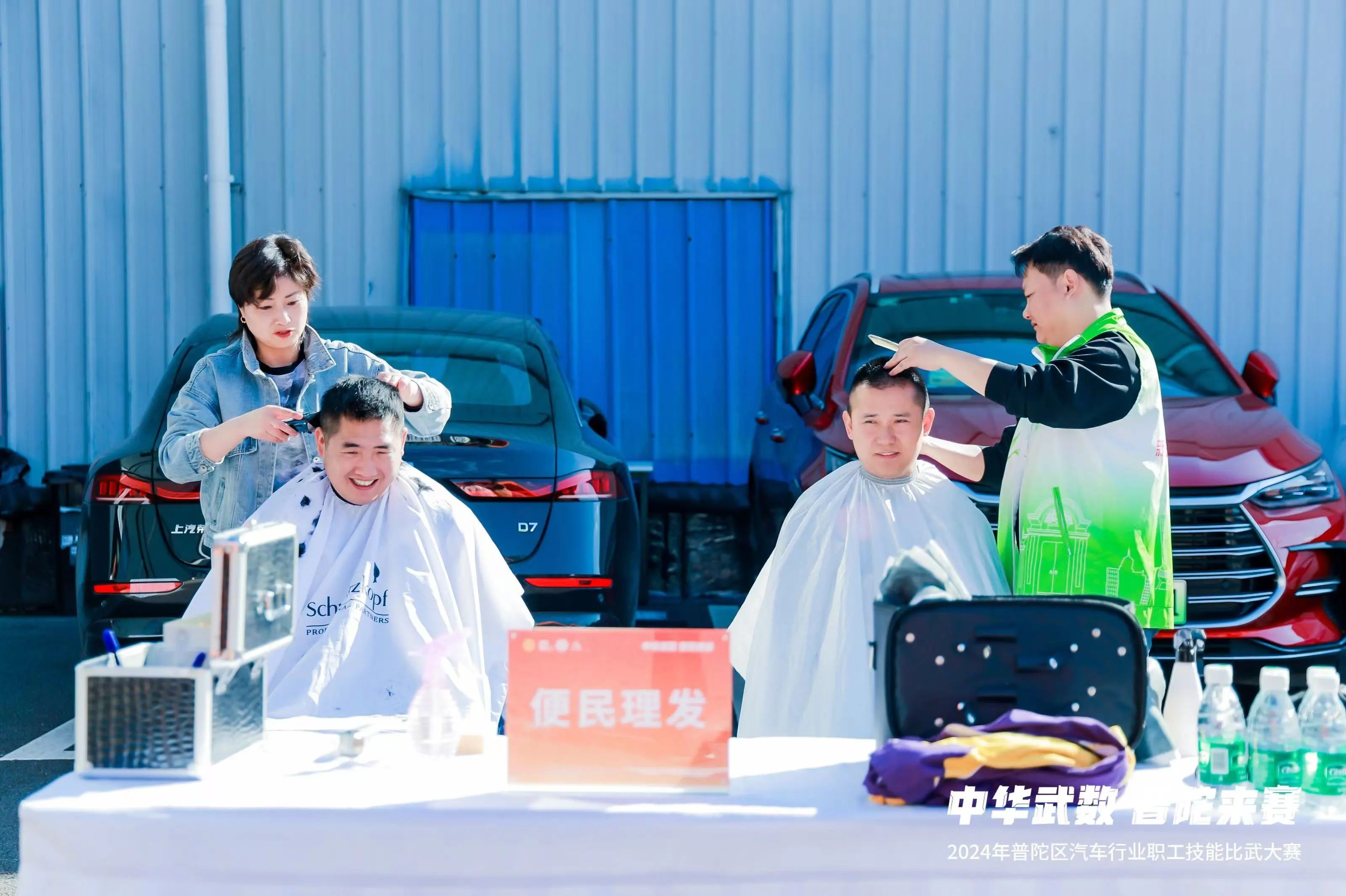 “网约车驾驶员车辆使用综合项目”设在本次赛事的分会场。对网约车司机进行交通法规和行业规范笔试、过S弯、单边桥、倒车入库的综合考评。记者在技能比武大赛现场看到,还专门设置了“网约车司机温馨服务专区”,包含公益理发、心理咨询服务等。
