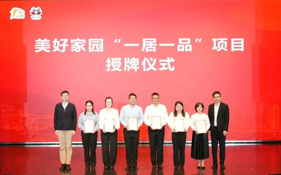 现场,为7家红色物业示范点和3家红色物业实践点授牌,展示了美好家园“一居一品”项目并授牌。
