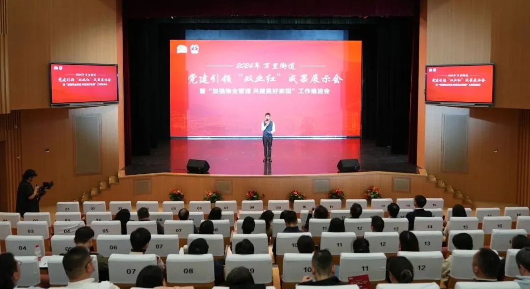大会在视频《比邻党建聚合力 多元治理绘新卷》中开启,视频生动展示了万里街道以党建为引领,持续推动“双业红”工作,聚合各方力量,共同绘制多元治理的新画卷。
