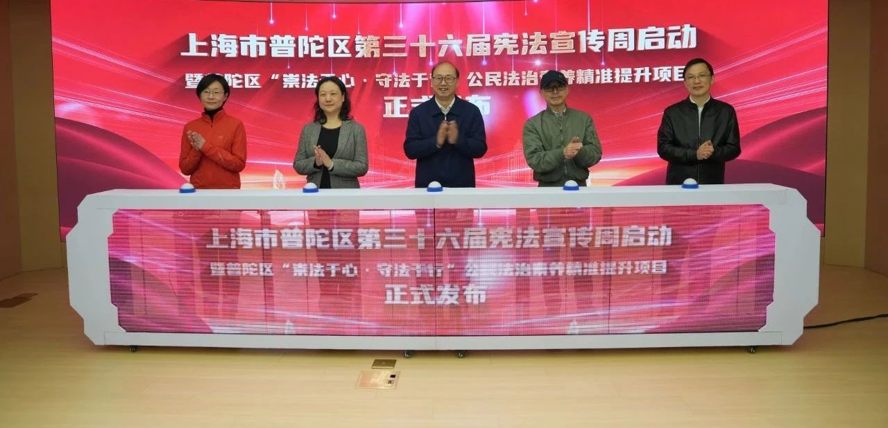 活动现场,与会领导共同启动普陀区宪法宣传周,同时发布了“崇法于心·守法于行”公民法治素养精准提升行动。