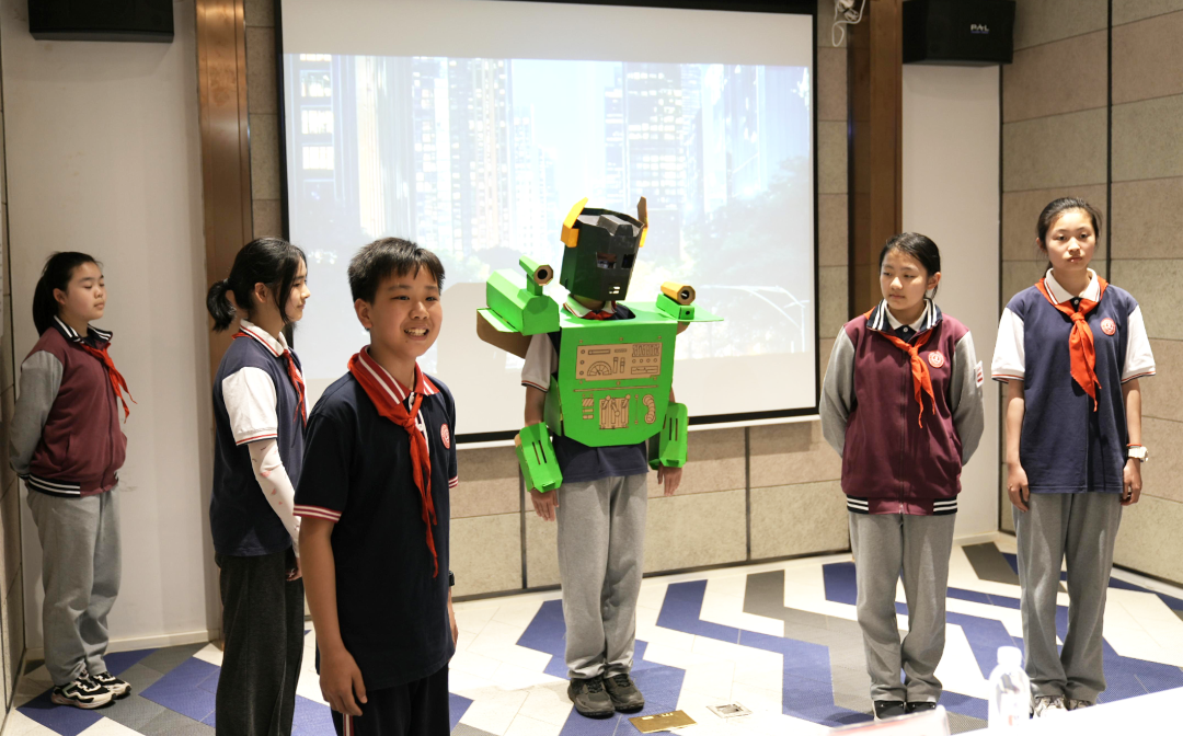 “绿色上海,我们在行动!”活动现场,曹杨中学附属学校学生带来《“碳”索未来》情景剧表演。小演员们主动走出校园,披上自制的环保服,讲述属于他们眼中的低碳生活,赢得台下观众的一致喝彩。