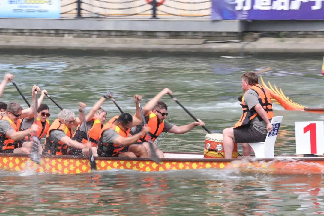 赛事进一步扩大“国际朋友圈”,不仅有荷兰、比利时、卢森堡、马来西亚、澳大利亚、加拿大等国家和地区的龙舟队伍共同竞渡苏河,来自美国、德国、西班牙、瑞士、匈牙利、新加坡、南非等国家和地区的龙舟爱好者,也纷纷在苏州白娘子、外国记者、上海龙、上海国际友人等龙舟队中担任主力。