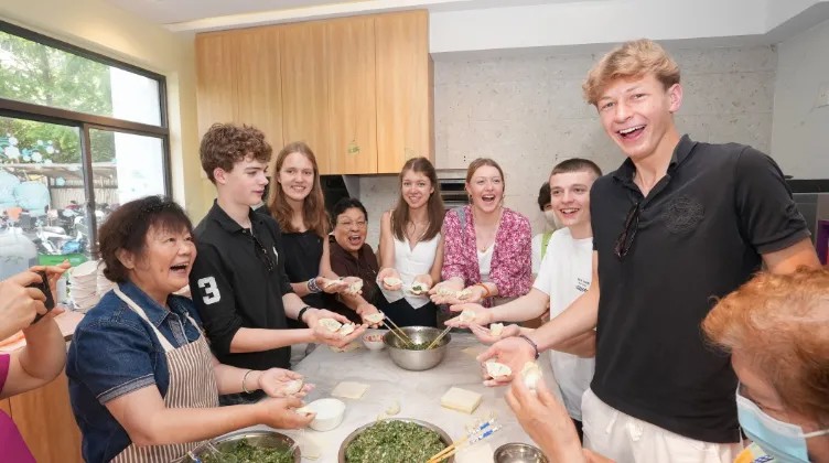案板前,不少德国学生还在真如侨界人士的示范下,学习包馄饨。从和面揉团到填馅捏褶,学生们的手法逐渐娴熟。“在中国,全家围坐包饺子、馄饨,是节日团聚的重要仪式。”侨界人士笑着说。