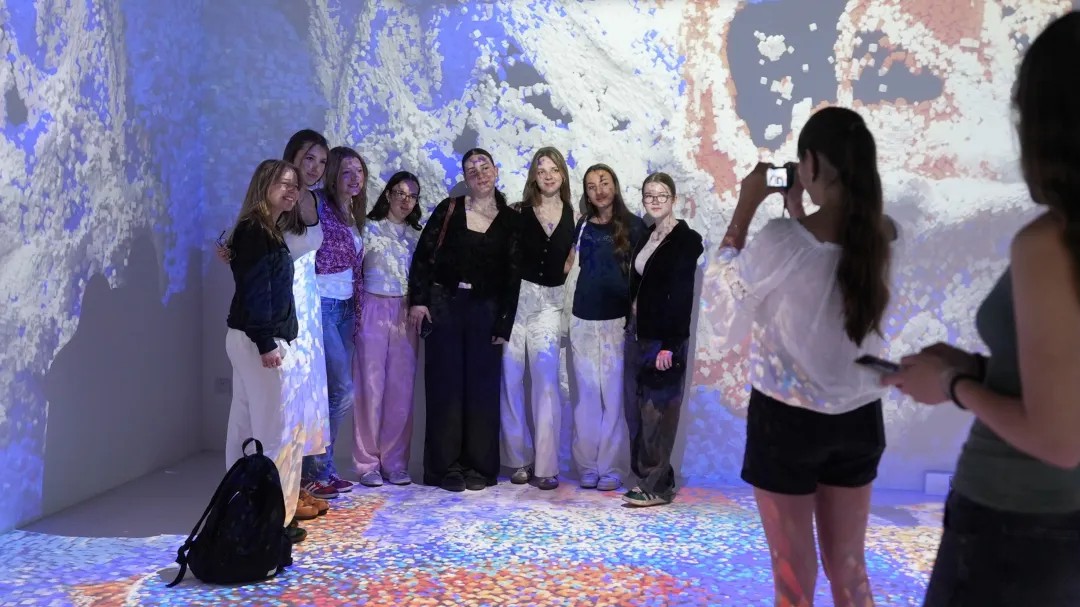 值得一提的是,活动开始前,德国师生们还参观了上海市数字广告园区。通过AI交互屏、人脸识别互动装置等技术体验,直观感受技术赋能创意的魅力。“这房间也太酷了,感觉非常高科技。”德国学生Lina对园区内的裸眼3D赞不绝口。