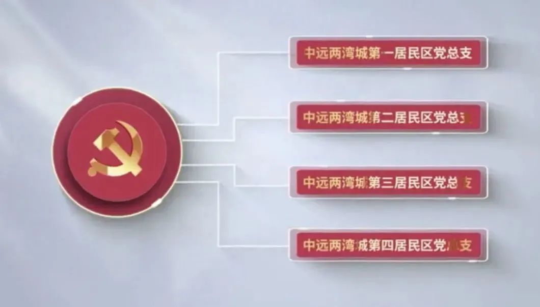 4个居民区党总支:中远两湾城第一、第二、第三、第四居民区党总支,推动“三位一体”有效运作,分别形成中一“红色双业”、中二“楼组客堂间”、中三“小型业主会”、中四“红色议事厅”等党建品牌,解决社区急难愁盼问题。
