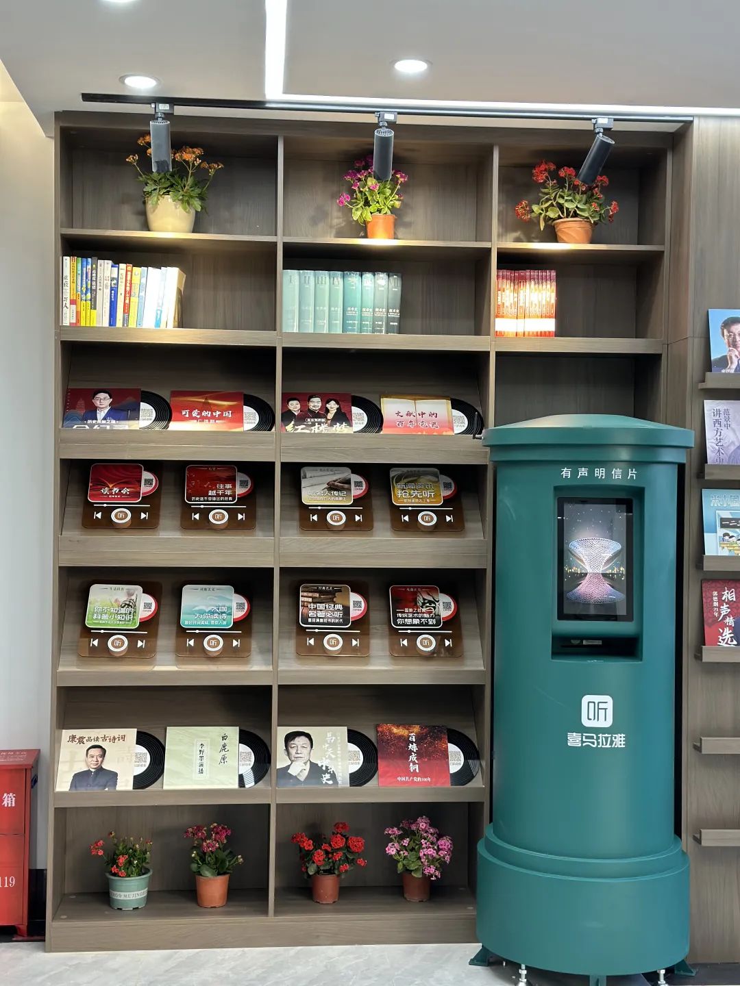 一楼大堂新建的城市书屋有声图书馆区别于传统纸质图书馆,用一面墙或一个整体空间来呈现海量有声书籍,为市民打造“家门口的有声图书馆”,随时随地听好书。