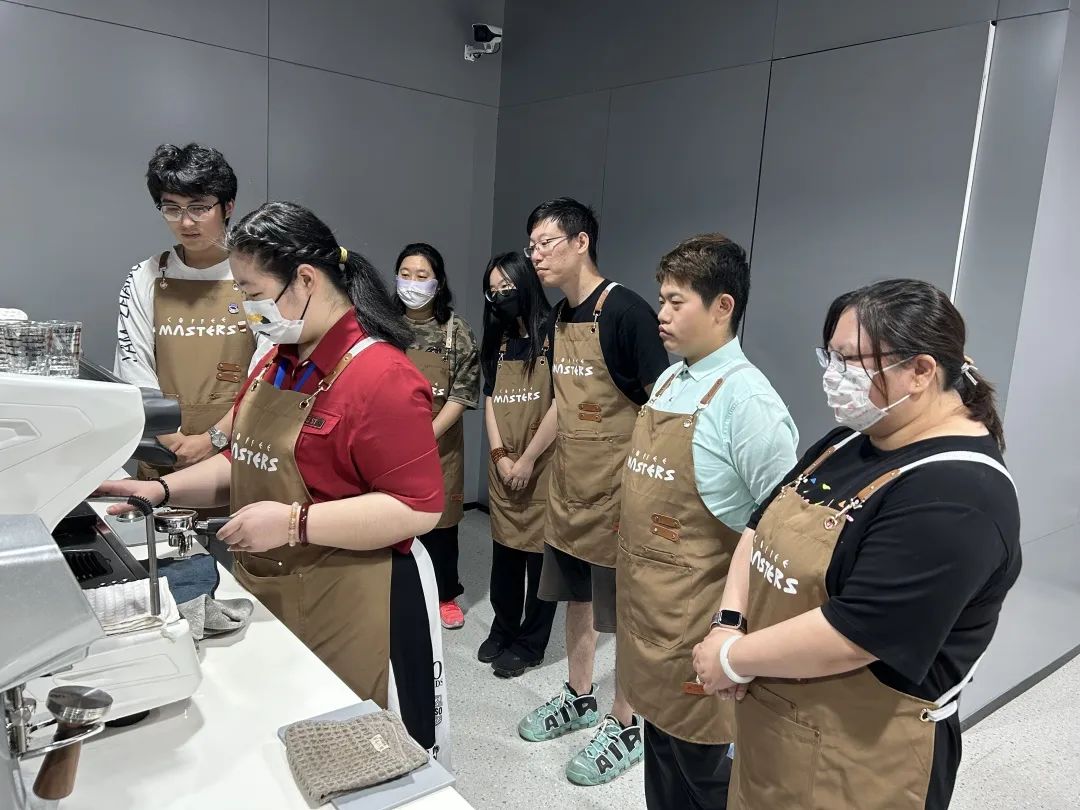 在实操环节中,在看了一遍老师的操作后,大家都跃跃欲试并开始轮流进行意式咖啡制作体验。在老师的指导下,每位学员都依照流程进行制作,学员们一同分享、品味各自制作的咖啡成品。
