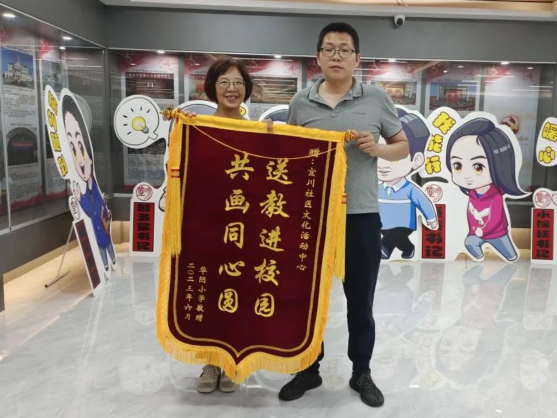 2023年06月09日 来源: 宜川路街道送教进校园,共绘同心圆,近日,宜川路街道社区文化活动中心收到一面来自华阴小学的锦旗,感谢中心为学生们送上的一系列丰富学生课余生活的活动与讲座,现在,让我们一起去看看这面锦旗背后的故事。